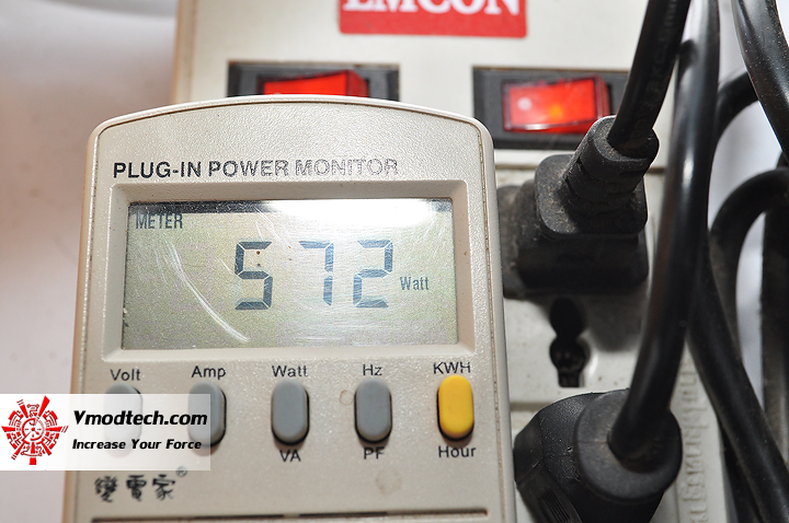อัตราการบริโภคไฟก็ถือว่าไม่มากเกินในสถานะเดิมๆกินไฟที่ 472วัตต์ ส่วนสถานะโอเวอร์คล๊อกเพิ่มไฟแม้จะอัดกันแบบเต็มๆแล้วก็ตามกินไฟแค่ 572วัตต์ ในการเทส Furmark