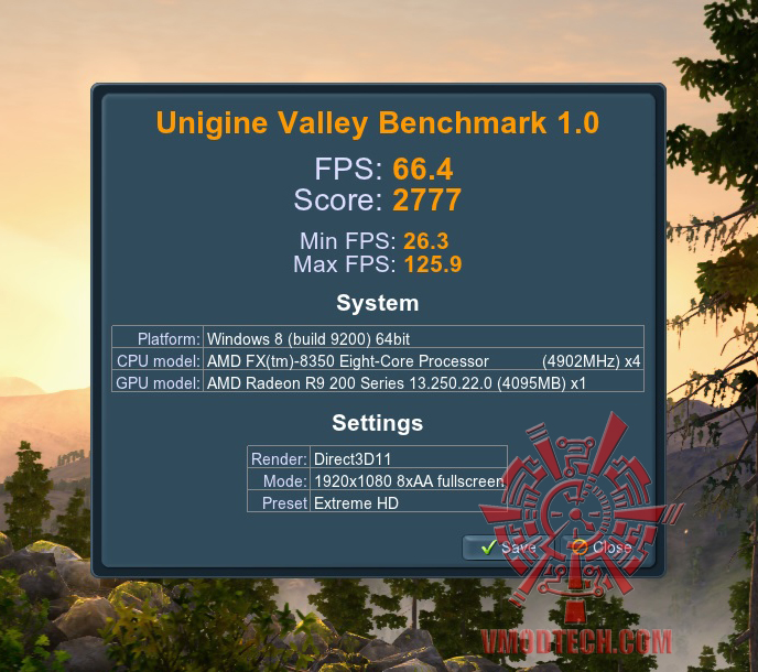Unigine Valley 1.0 เฟรมเรตอยู่ที่ 66.4เฟรมเรตครับ แรงมากในสถานะโอเวอร์คล๊อก