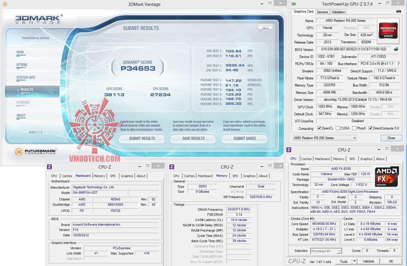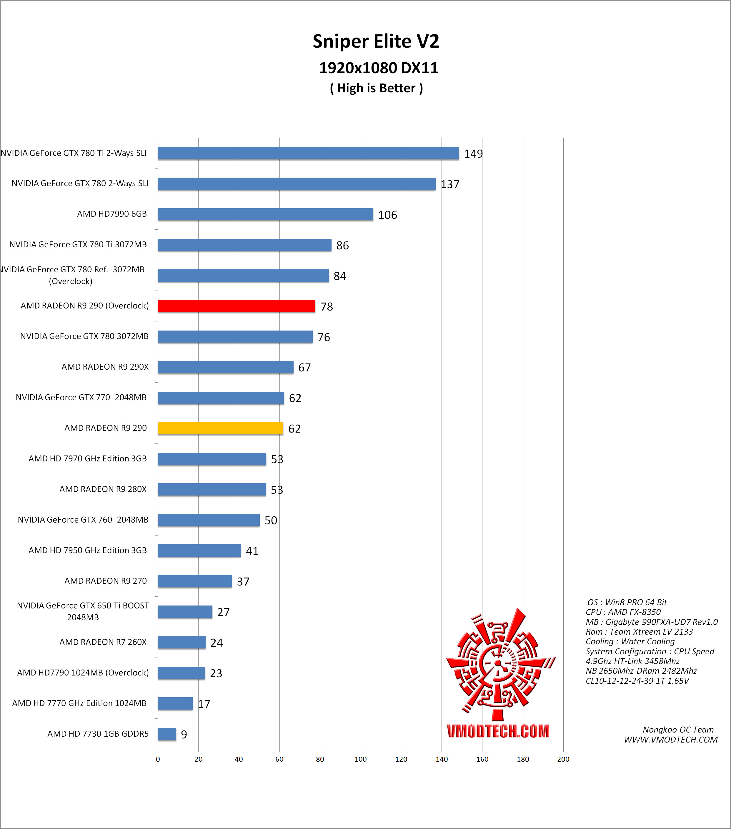 สวัสดีครับทุกๆท่านที่เยี่ยมชมเว็บไซต์ Vmodtech.com วันนี้พบกันอีกเช่นเคยสำหรับทุกๆท่านที่ชื่นชอบระบบของเอเอ็มดี ซึ่งวันนี้จะมาทดสอบเต็มระบบร่วมกับการ์ดจอตัวแรงที่เพิ่งทำการเปิดตัวไปอย่าง AMD RADEON R9 290 ตัวแรงในรหัส Hawaii ซึ่งหลายๆท่านคงได้รับชมความแรงในช่วงเปิดตัวที่ Vmodtech.com ของเรากันไปบ้างแล้วโดยหลายๆท่านคงได้เห็นความคุ้มค่าทั้งประสิทธิภาพและราคาที่ไม่สูงมากที่อยู่ราวๆ 14-15K ณ ปัจจุบันถ้าไม่ได้มีการเปลี่ยนแปลงกันอีกก็ถือว่าเป็นการ์ดสุดคุ้มอีกตัวเลยก็ว่าได้ครับ สำหรับในวันนี้เราจะมาทดสอบร่วมกับระบบ AMD เต็มรูปแบบโดยใช้ซีพียูตัวแรงอย่าง AMD FX-8350 ในการรีดประสิทธิภาพของการ์ดจอ AMD RADEON R9 290 ว่าจะแรงกันขนาดไหน จัดกันแบบเต็มๆทั้งเดิมๆและโอเวอร์คล๊อกกันแบบเต็มๆเช่นเคย ก่อนอื่นไปชมรายละเอียดจากทางเว็บไซต์ผู้ผลิตกันก่อนครับ