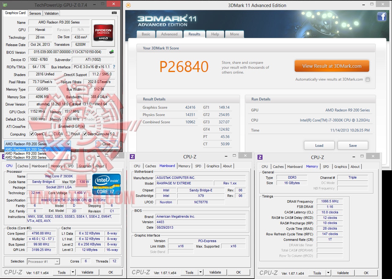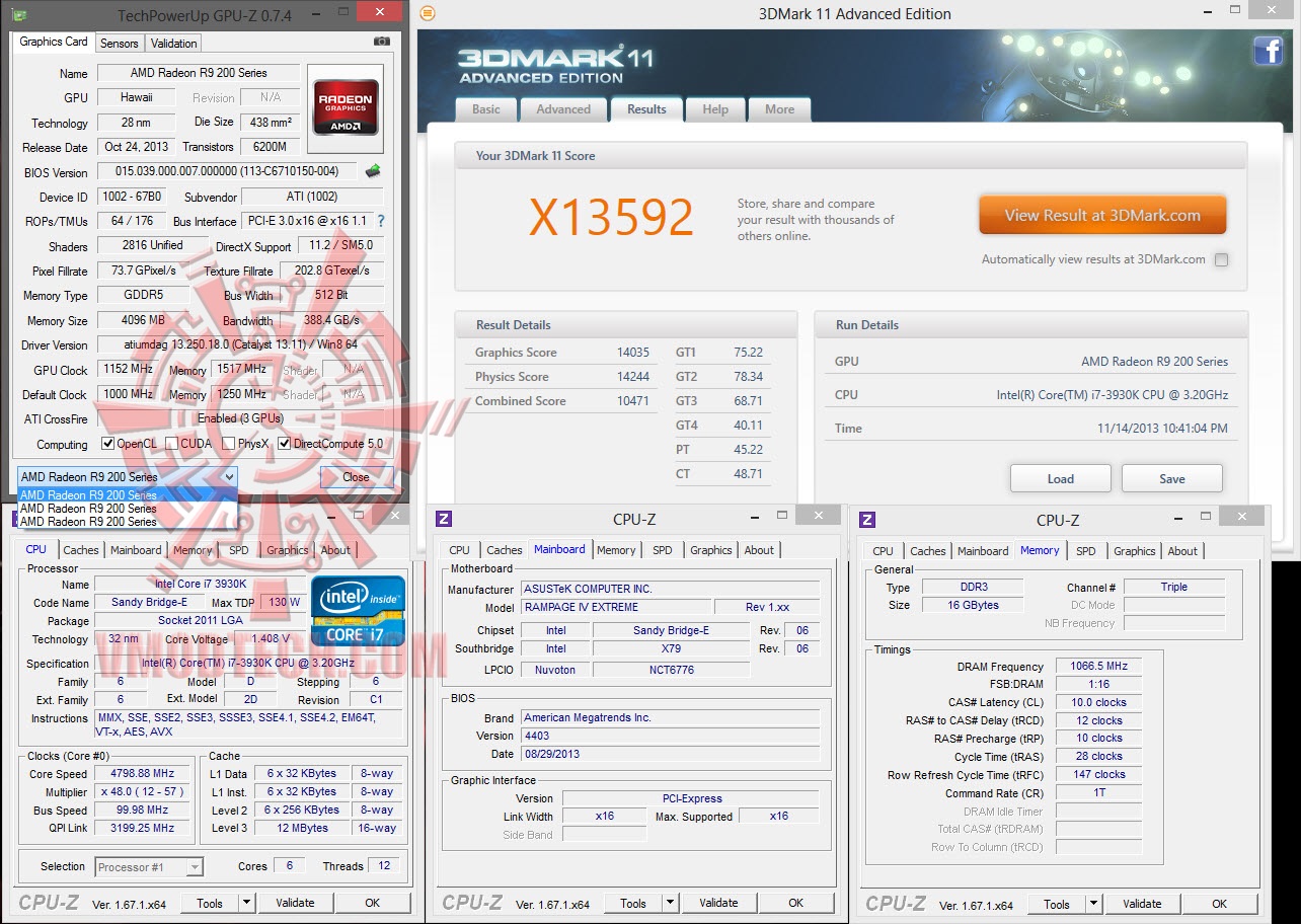 AMD Radeon R9 290X 3-Ways CrossFireX Overclock @ 1152/1517 MHz Core/Mem