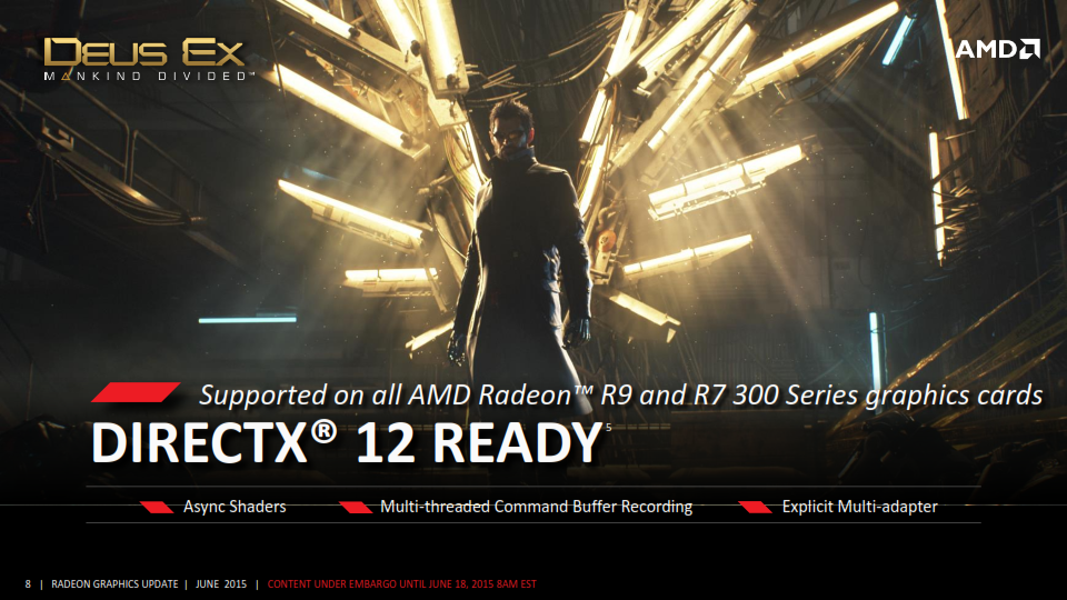 ในส่วนของฟีเจอร์ต่างๆของทาง AMD ที่จะนำมาใช้กับบรรดาการ์ดจอรุ่นใหม่ๆที่คลอบคลุมการทำงานในหลายรูปแบบสำหรับบรรดาเกมส์เมอร์ไม่ว่าจะเป็น AMD LiquidVR™ technology , DirectX® 12, Vulkan™ & OpenGL® 4.5 APIs , Frame Rate Target Control (FRTC) , AMD FreeSync™ Technology ฯลฯ