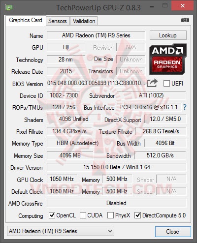ความเร็วของการ์ด R9 FURY X นั้นจะอยู่ที่ 1050/500 MHz Core/Mem โดยที่เมมโมรี่ที่ใช้คือ HBM อย่างที่ทุกคนทราบกันดี