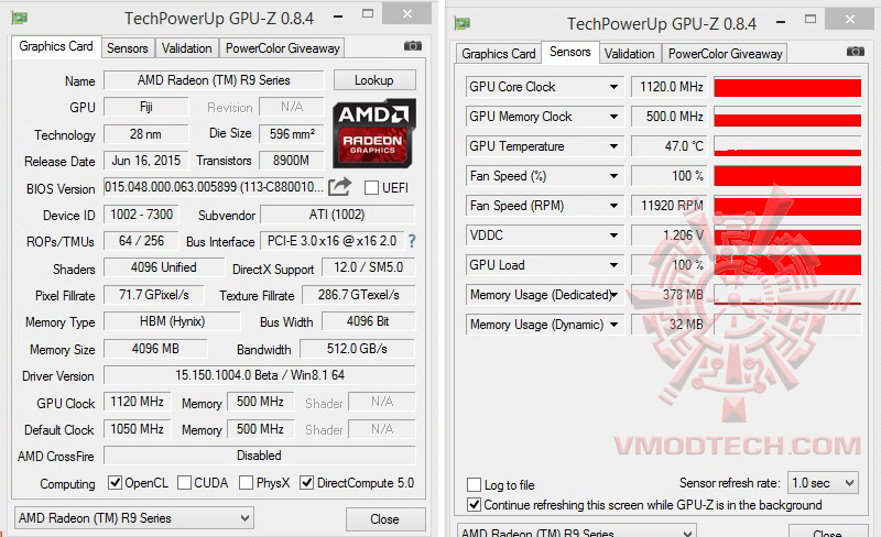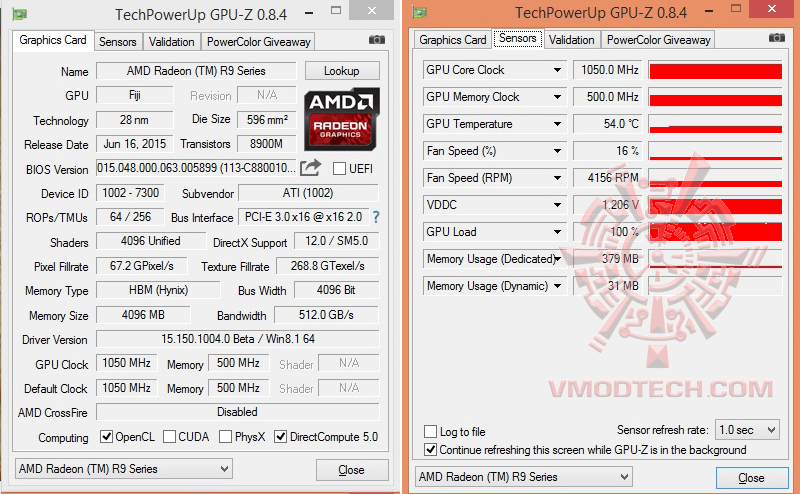 ความเร็วเดิมๆของ AMD RADEON R9 FURY X ครับ Baseclock Core 1050Mhz Memory 500Mhz เป็นสเปกเดิมๆที่โอเวอร์คล๊อกกันมาจากโรงงาน