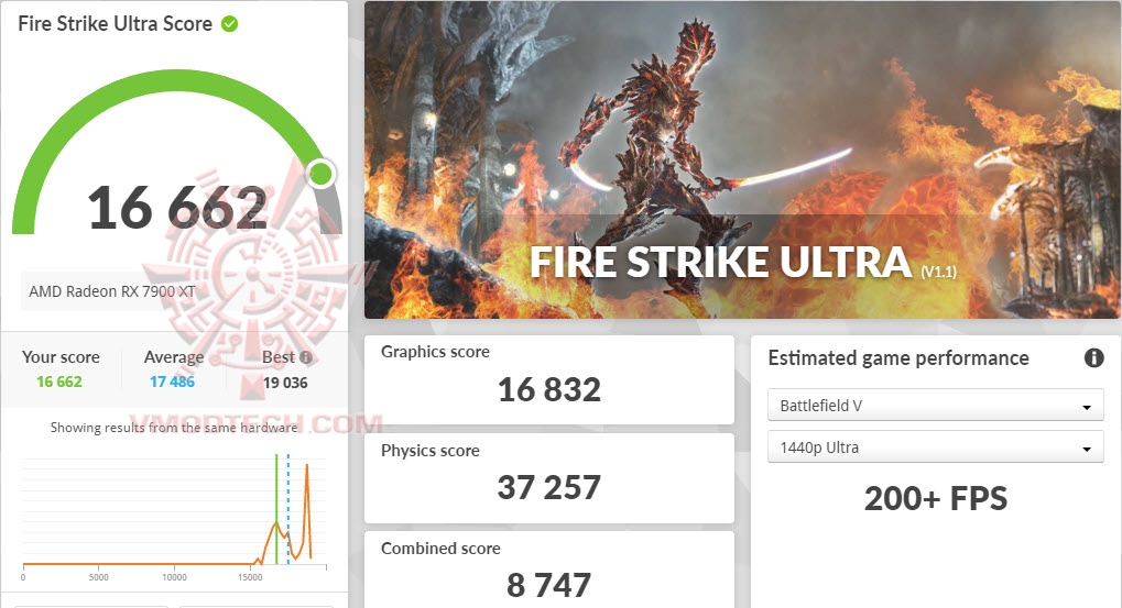 overall score ได้ที่ 2107 และไฟรวมบนการ์ดใช้ไป 141 วัตต์