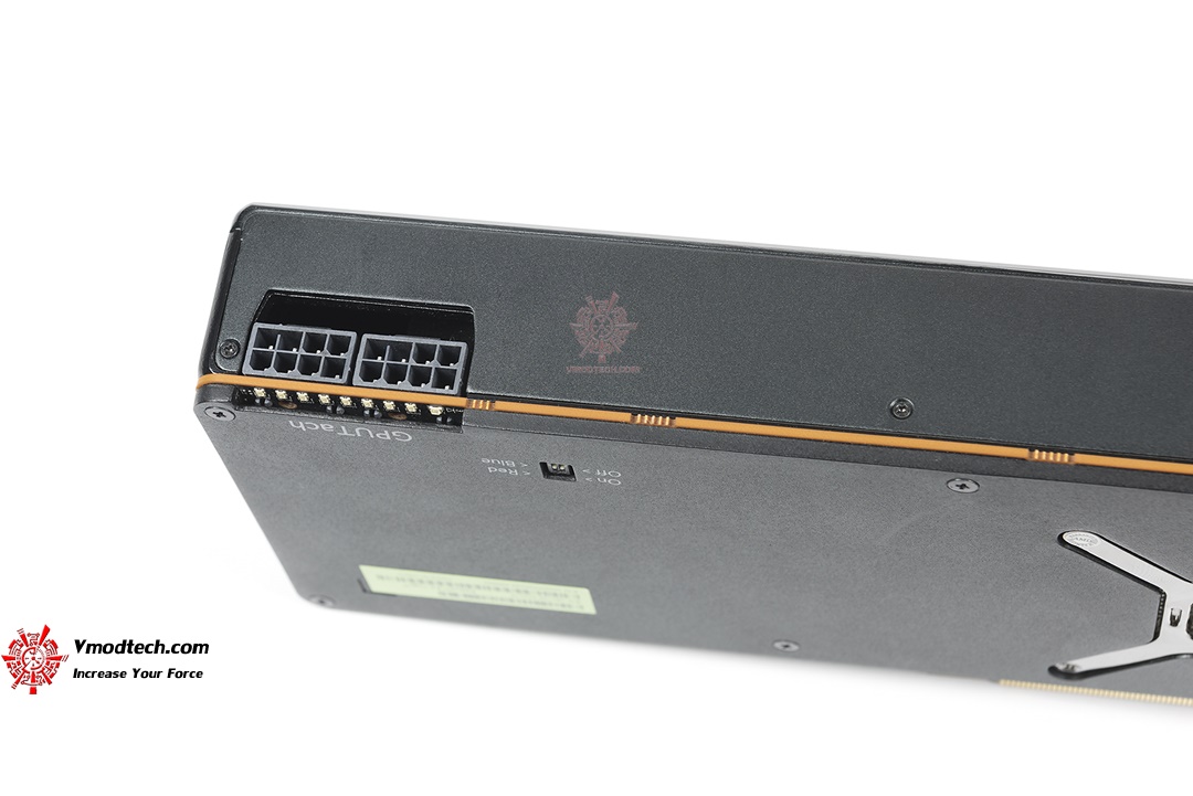 จะเห็นที่ด้านหลังว่ามีดิ๊ปสวิทซ์อยู่ตัวนึง ซึ่งมันสามารถปรับแสงที่ LED บริเวณใต้อักษร GPUTach ว่าจะให้เป็นสีแดงหรือสีน้ำเงิน