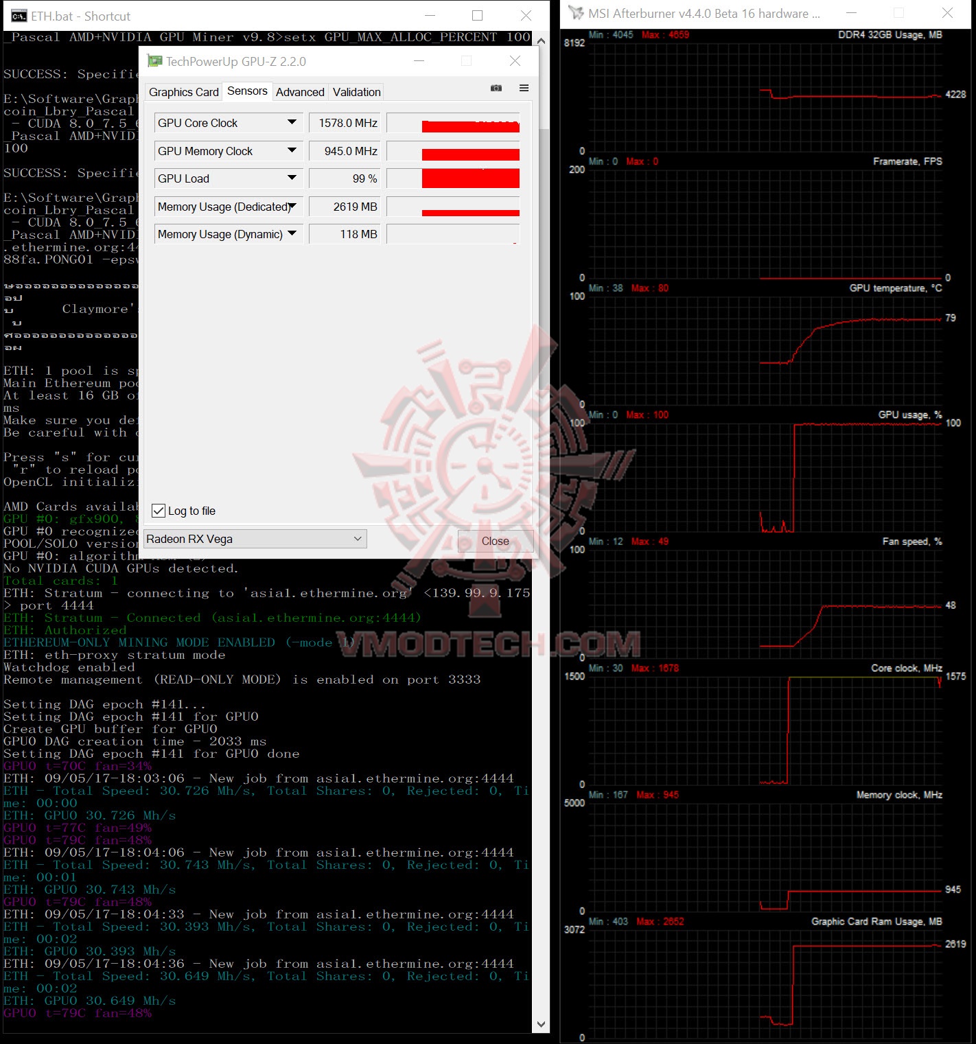 ทดลองขุดเหรียญบ้าง ผลจากการขุดเหรียญนั้นจะเห็นได้ครับว่า ค่านั้นจะวิ่งอยู่แถวๆ 30.7 Mh/s