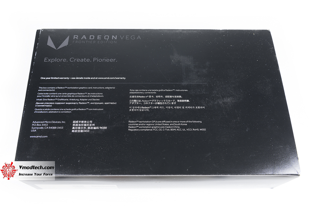 VEGA Frontier นั้นมาพร้อมกับแพกเกจลักษณะมาตรฐานที่เน้นความเรียบง่ายด้วยกระดาษบางๆสีดำ ภายนอกออกแบบโลโก้ได้หรูครับ