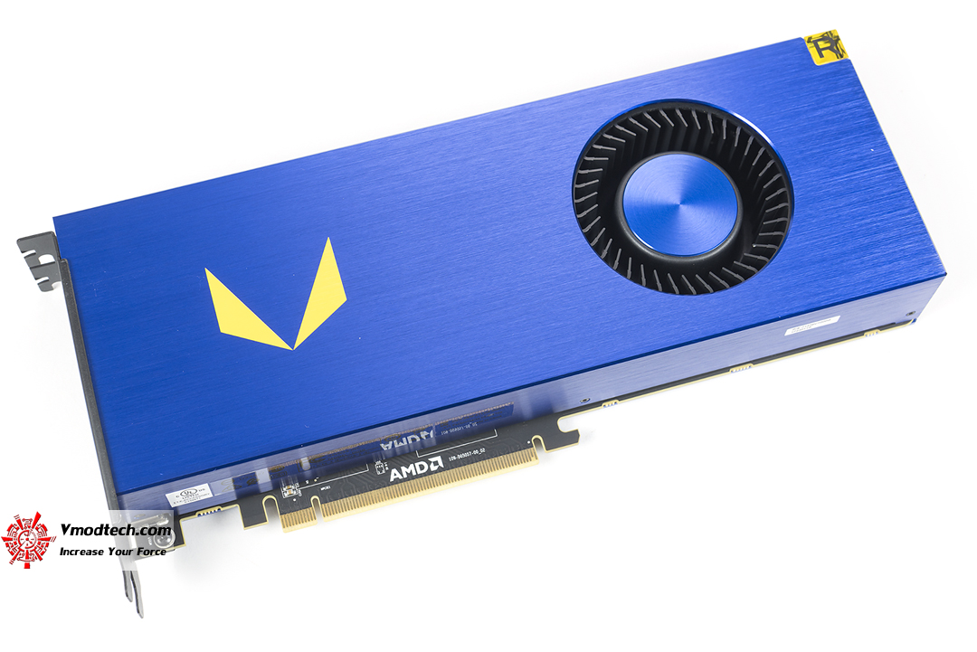 หน้าตาของ VEGA Frontier นั้นจะมีลักษณะดังนี้ ตัวการ์ดนั้นจะถูกออกแบบมาเป็นสีน้ำเงินที่มีโทนฟ้าเข้มๆ ฝาครอบชุดพัดลมนั้นจะเป็นอลูมิเนียมอโนไดซ์บางๆแต่ดูแข็งแรง สีที่พ่นนั้นดูดีครับมีการปัดเสี้ยนให้มีเทคเจอร์สวยงามเพิ่มขึ้น พัดลมยังเป็นแบบ Blower แบบดั้งเดิมเลย