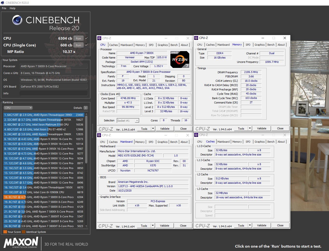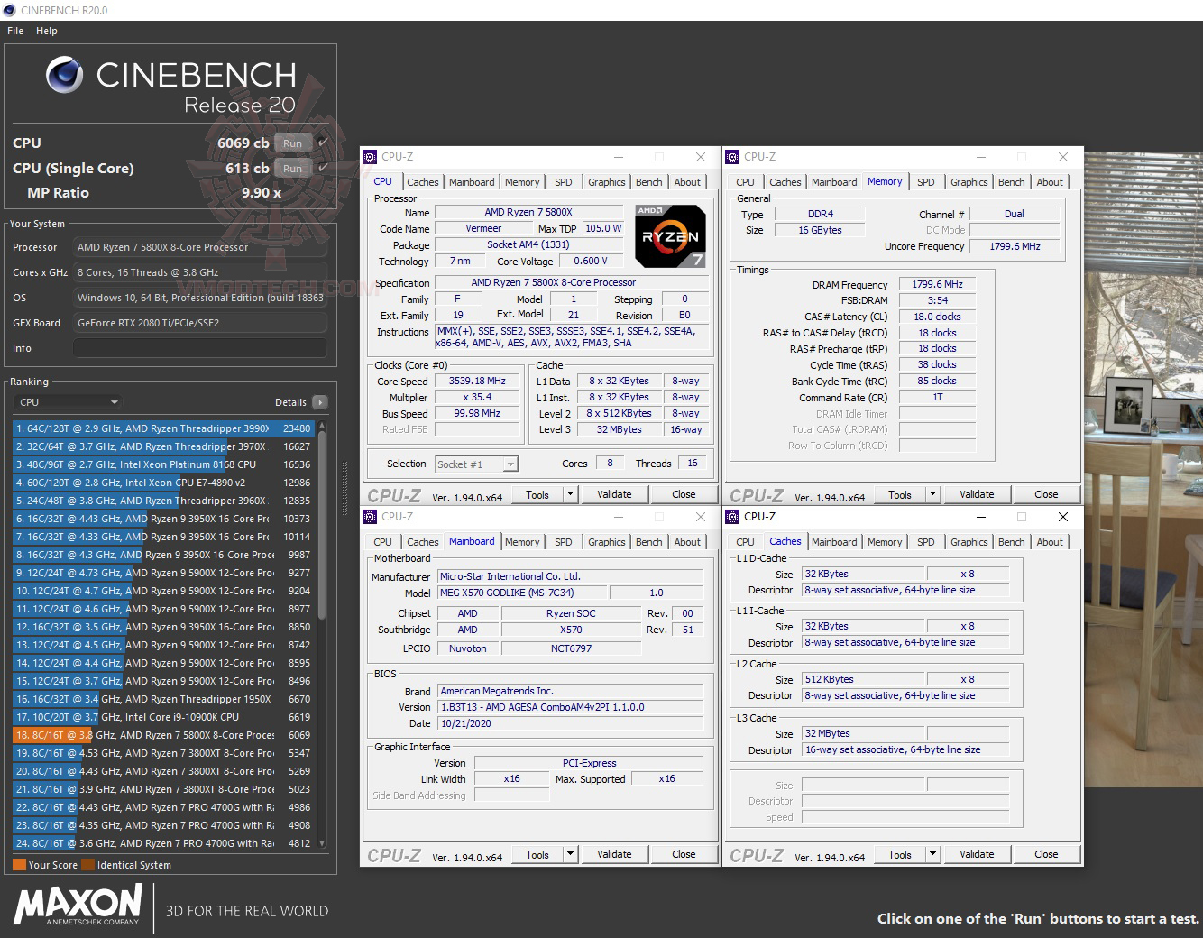 รายละเอียดต่างๆของระบบที่ใช้ทดสอบกันในวันนี้ครับ ซีพียูเป็น AMD RYZEN 7 5800X รุ่นใหม่ล่าสุดครับพร้อมจัดเต็มคู่กับเมนบอร์ดตัวแรง MSI MEG X570 GODLIKE รุ่นใหม่ล่าสุดชิบเซ็ต X570 ที่สามารถใช้งานกับซีพียู AMD RYZEN 5000ซีรี่ย์ได้อย่างเต็มประสิทธิภาพกันเลยทีเดียว กราฟฟิกการ์ดเป็น ASUS GeForce RTX 2080 Ti DUAL จากทางเอซุสครับ