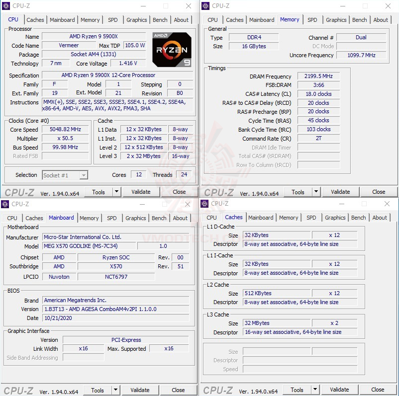 …มาถึงในเรื่องของ IPC ที่เราทราบกันดีในตอนเปิดตัวว่า AMD ในสถาปัตย์ ZEN3 นั้นมีประสิทธิภาพเพิ่มมากขึ้นถึง 17% ถ้าเรายังจำได้ตั้งแต่ AMD เปิดตัวซีพียูตระกูล FX เป็นต้นมาที่มีการนำเสนอซีพียูที่มีความเร็วทะลุ 5Ghz เป็นครั้งแรกผ่านมาถึงซีพียูตระกูล RYZEN ในสถาปัตย์ ZEN ทาง AMD ก็ยังทำความเร็วซีพียูได้ไม่มากเท่าที่ควรกล่าวคือป้วนเปี้ยนอยู่ประมาณ 4.0-4.7Ghz จนมาถึง ZEN2 ในความเร็วนี้ แต่เมื่อใช้งานจริงแบบโอเวอร์คล๊อก ALL Core ใช้งานแบบนิ่งๆก็จะวิ่งกันที่ 4.3Ghz - 4.4Ghz ตามประสิทธิภาพซีพียูที่เราได้เห็นกัน แต่ในซีพียู AMD RYZEN 5000ซีรี่ย์ที่ผมได้ทำการทดสอบในวันนี้ต้องบอกเลยว่าผมคาดหวังเอาไว้แค่ 4.5 - 4.6Ghz เท่านั้นหรือแบบต่ำก็ 4.3 - 4.4Ghz เท่าเดิมในแบบใช้งานจริง แต่สำหรับ AMD RYZEN 9 5900X ที่มีจำนวนคอร์ 12C/24T นั้นสามารถทำความเร็วได้สูงถึง 4.72Ghz ไฟเลี้ยงเพียงแค่ 1.35v เท่านั้นเองครับเรียกได้ว่าใช้ไฟเลี้ยงได้ต่ำมากๆและยังอัดแบบเต็มๆทะลุ 5.05Ghz ถือเป็นครั้งแรกของซีพียูตระกูล RYZEN เลยก็ว่าได้ครับที่อัดกันทะลุ 5Ghz ด้วยน้ำธรรมดาแบบไม่ต้องใช้ Ln2 ตามความรู้สึกของผมแล้วถือว่าทำได้ดีเกินคาดมากๆครับ และความเสถียรในการใช้งานนั้นก็เรียกได้ว่านิ่งเสถียรดีมากๆ แต่ก็อาจจะต้องยกเครดิตให้เมนบอร์ด MSI MEG X570 GODLIKE ของทาง MSI ที่ดึงประสิทธิภาพซีพียูออกมาได้อย่างดีเยี่ยมด้วยครับ แต่ดูทรงแล้วซีพียู ZEN3 นั้นน่าจะใช้งานกับเมนบอร์ด 500ซีรี่ย์และ 400ซีรี่ย์ได้เป็นอย่างดีและคงโอเวอร์คล๊อกได้ง่ายมากครับจากที่ดู ถ้าถามผมในภาพรวมในเรื่องโอเวอร์คล๊อกผมต้องบอกเลยว่า ZEN3 หรือ AMD RYZEN 9 5900X โอเวอร์คล๊อกได้ง่ายมากครับและสายโอเวอร์คล๊อกน่าจะชอบด้วยครับ