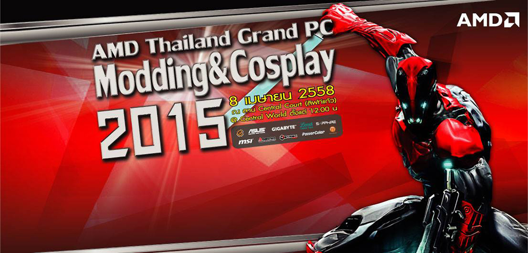 ……….สวัสดีครับ วันนี้จะพาไปชมบรรยากาศงาน “AMD Thailand Grand PC Modding And Cosplay 2015″ ซึ่งจะเป็นการประกวดการแต่งเคสคอมพิวเตอร์ (Case Moding) ซึ่งชาว Vmodtech เราคงรู้จักกันเป็นอย่างดีแล้ว และการประกวดแต่งกายแสดงออกเลียนแบบตัวการ์ตูน (Cosplay) รวมไว้ในงานเดียวกันเลยครับ งานนี้ AMD ประเทศไทยรับเป็นเจ้าภาพเองเลย วันนี้มีภาพบรรยากาศให้ชมกันแบบจุใจแน่นอนครับ สำหรับที่มาที่ไปและกติกาต่างๆในการประกวดครั้งนี้คลิ๊กเข้าไปชมกันได้ที่นี่ครับ โค้งสุดท้าย สำหรับ AMD Case Moding Contest 2015