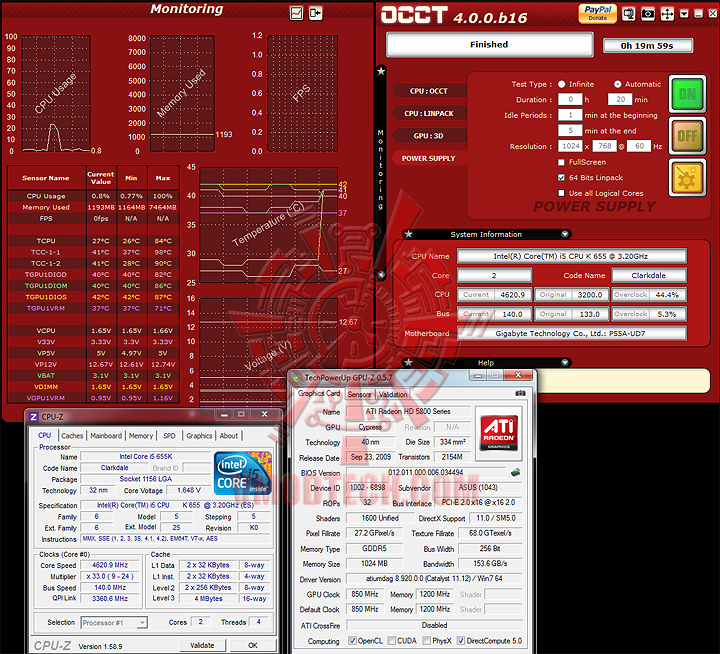 จัดชุดเทสด้วย i5 655K กับ HIS HD5870 กันครับ โดยที่ CPU จะมีการ Overclock ไปที่ประมาณ 4.6 GHz ด้วยไฟ CPU ที่มากกว่าปกติสาม-สี่เคาะตอนที่ตั้งใน Bios เพื่อให้ระบบดึงไฟจาก PSU มากกว่าปกติ รวมถึงตั้งเป็นมาตรฐานสำหรับเทส Heat Sink ไปด้วยในตัวครับ