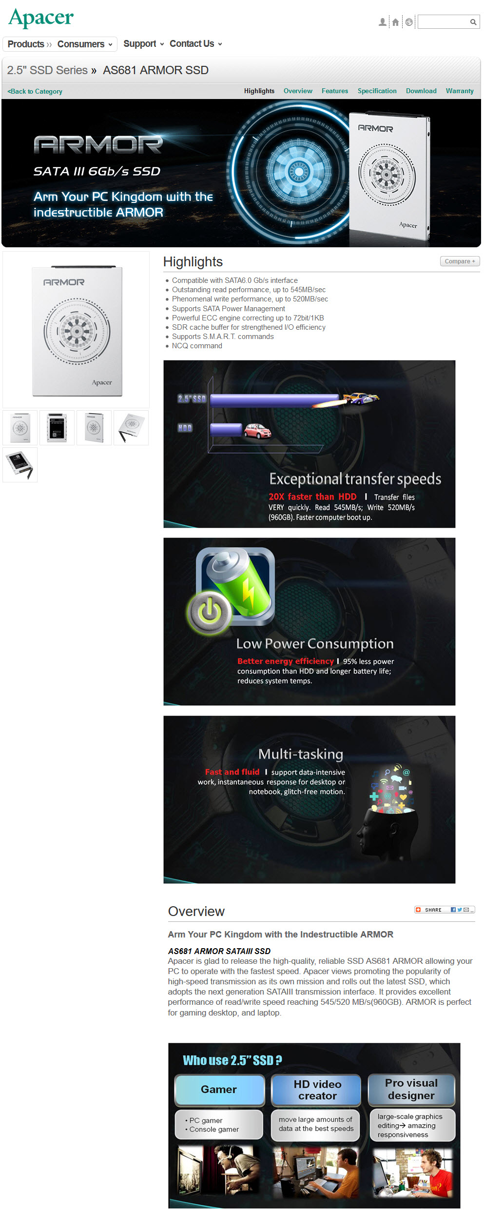 ในซีรีย์ Armor AS681 นั้นจะมีความจุให้เลือกสามขนาดคือ 120, 240, 480, และ 960GB ครับ มีให้เลือกกันทุกระดับความต้องการเลย