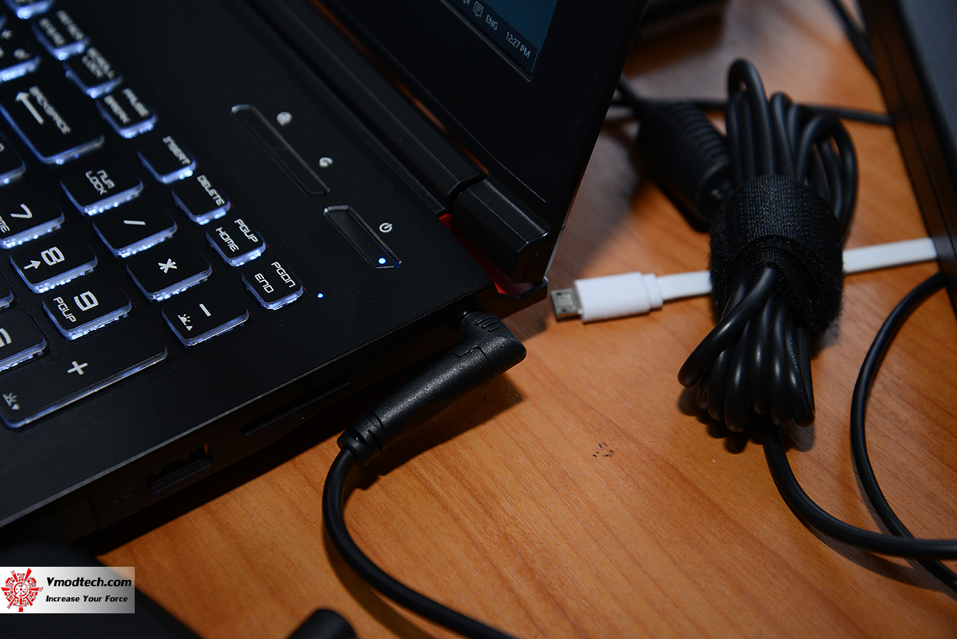 ด้านหลังจะประกอบด้วยช่อง USB: DC 5V 2.5A , DC Jack:19V 3.42A (65W) ครับ