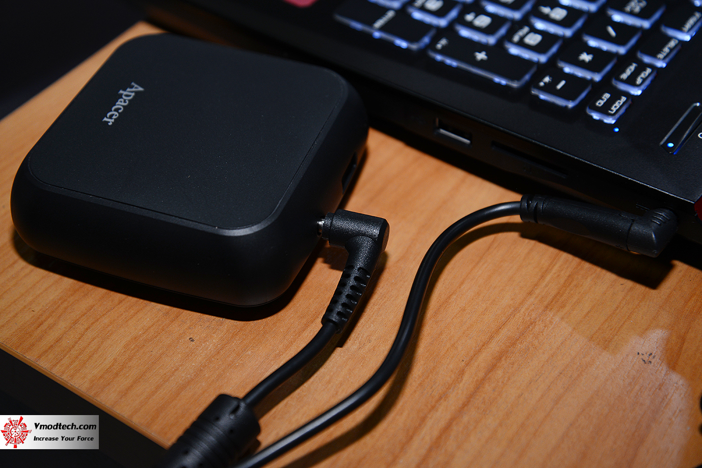 ต่อสายไฟ DC 19V เข้าไปกับตัว Apacer Power Bank b222 ครับ