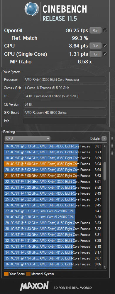 Cinebench R11.5 เรนเดอร์8หัว ทะลุ 8.64FPS ไปแล้วครับแรงสะใจจริงๆ Open GL ก็แรงจัดแบบทะลุ 86.25FPS กันไปเลยครับ สุดยอด
