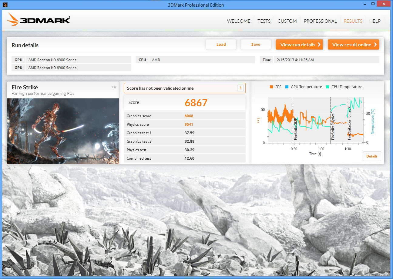 ชุทดสอบ 3DMark ตัวใหม่ล่าสุดก็แรงจัดทุกการทดสอบในระบบของ AMD โดยคะแนน Fire Strike อยู่ที่ 6867คะแนนกันเลยทีเดียว แรงจัดจริงๆ