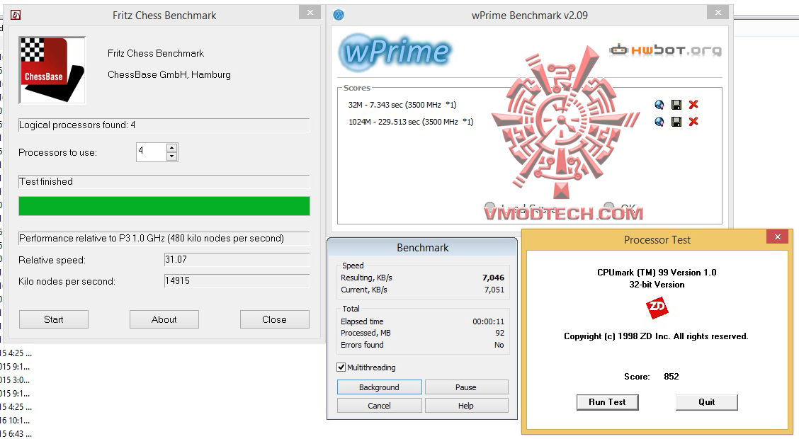 wPrime2.09 , CPUMark99 WINRAR 5.0 & Fritz Chess Benchmark