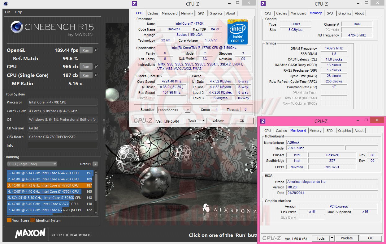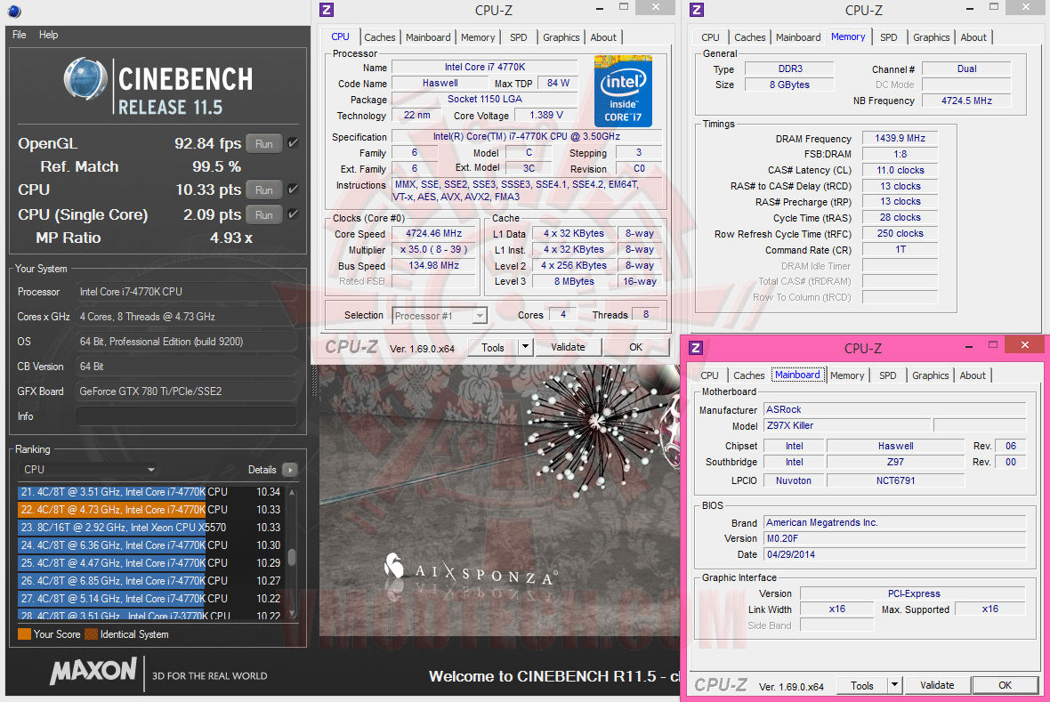 4th Generation Intel® Core™ i7-4770K @ 4,724MHz Bclk 134.98MHz