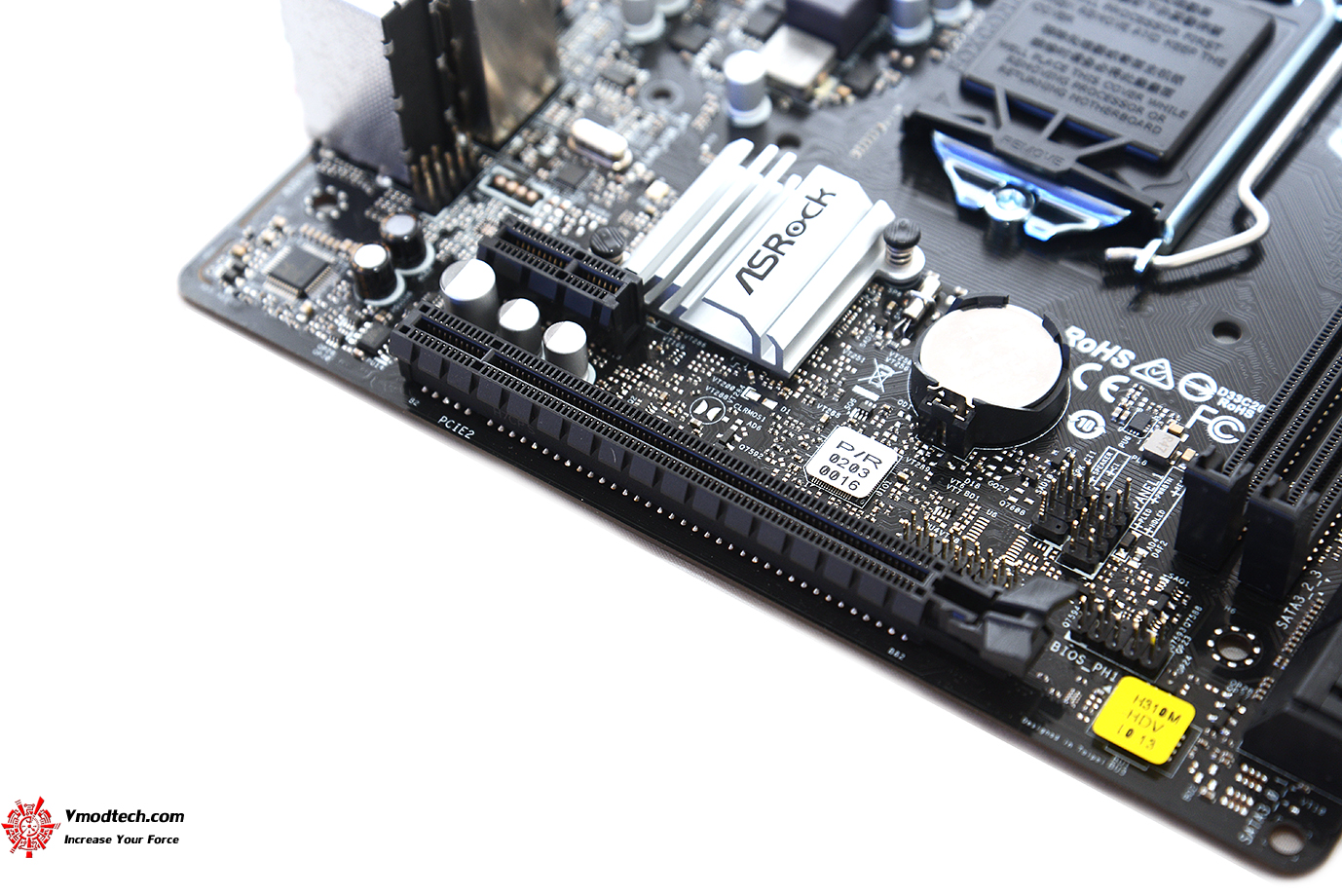 ฮีตซิงค์ชิบเซ็ต Intel® H370 Chipset รุ่นใหม่ล่าสุดจากทางอินเทล มีตราโลโก้ ASRock อยู่บนตัวฮีตซิงค์ขนาดเล็กครับ