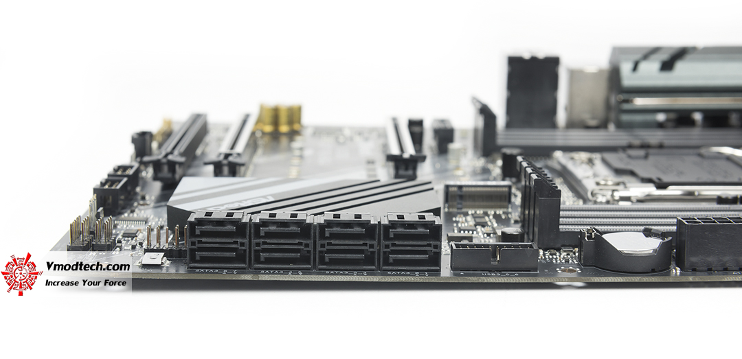 ที่ด้านข้างของบอร์ดบริเวณพอร์ท SATA III ก็จะเห็นช่องทางการเชื่อมต่อทั้งหมด 8 พอร์ท