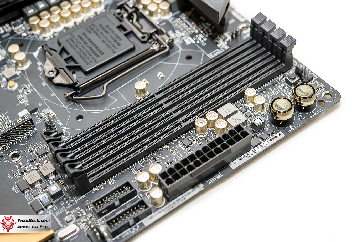 …Memory Slot แบบ Dual Channel ที่มากัน 4 Slots ได้ขนาดความจุรวมทั้งหมดสูงสุดที่ 32GB ครับ และยังมีสวิทซ์ RESET , START สีทองหรูหราอยู่บริเวณนี้ด้วยครับ