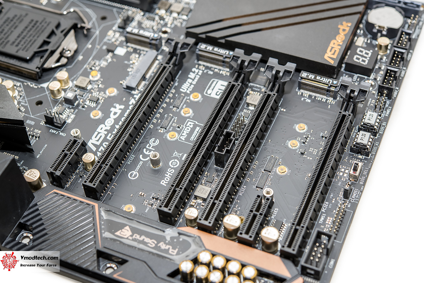 …PCI-E 3.0/2.0 X16 Slot ที่มาพร้อมกัน 4 ช่องทาง ที่สนับสนุนการทำงานทั้งในรูปแบบ 2-Ways SLI & 4-Ways CrossFireX ตามด้วย PCI-E 3.0/2.0 X1 Slot อีก 2 ช่องทางครับ และบริเวณนี้ยังมีจุดเชื่อมต่อกับ M.2 SATA EXPRESS ที่ใส่ได้หลายขนาดมากๆถึง 3 ช่องทางจัดเต็มครับ