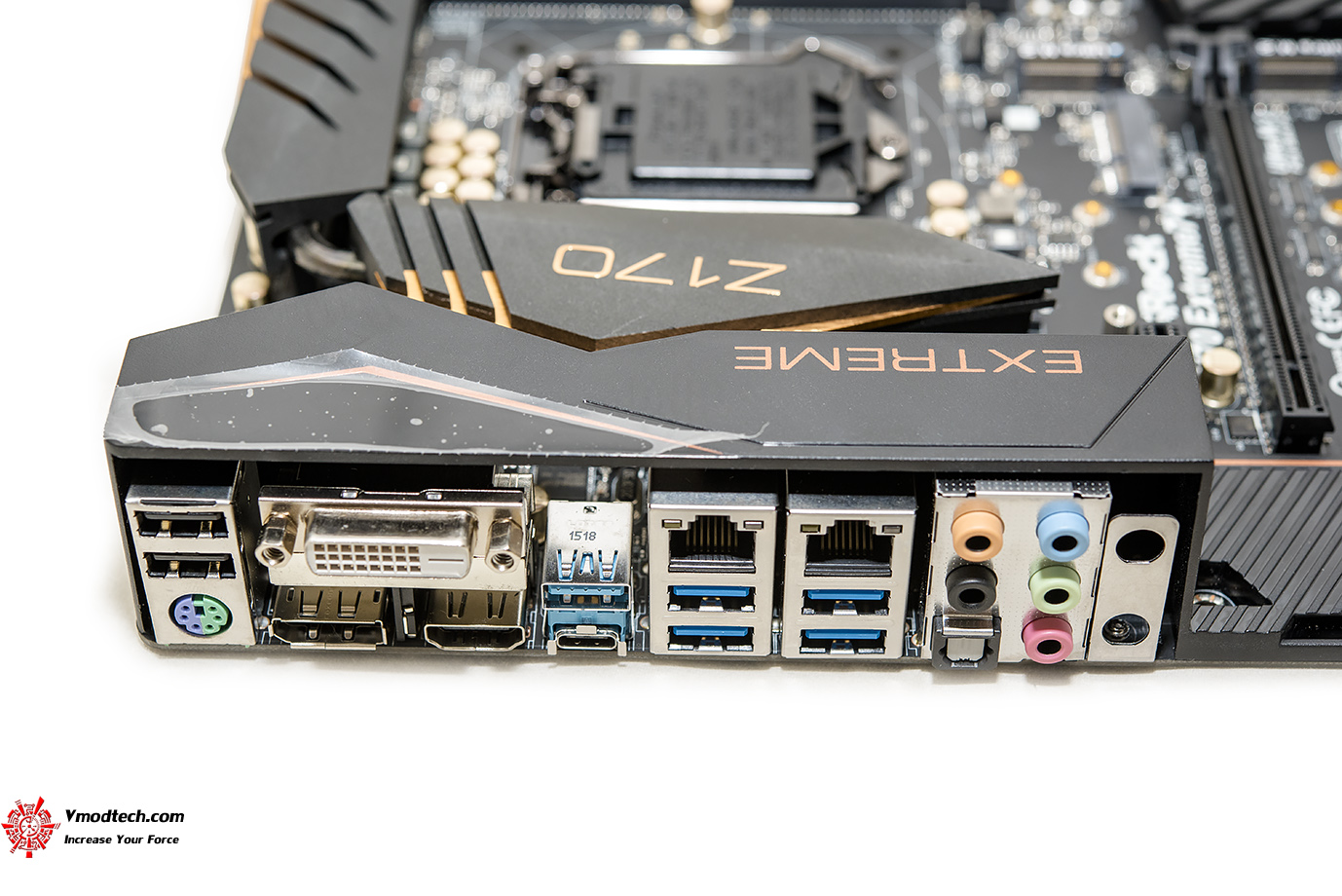 …ส่วน Back Panel ด้านหลังก็มากันแบบครบเครื่อง ไม่มีขาดตกบกพร่องส่วนที่สำคัญใดๆไปครับ โดดเด่นด้วยช่องต่อ Intel Gigabit LAN คู่ และ USB 3.1 TYPE-A & TYPE-C จัดเต็มครับ
