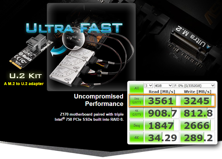 หรือจะเอา U.2 Kit มาเสียบ 3 ช่อง Raid0 กับ SSD แบบ NVMe ก็จะได้สัมผัสความแรงทะลุอวกาศระดับ 3,XXXMB/s กันเลยครับ