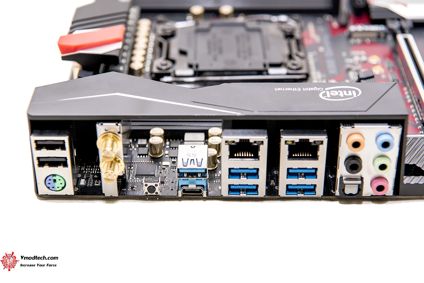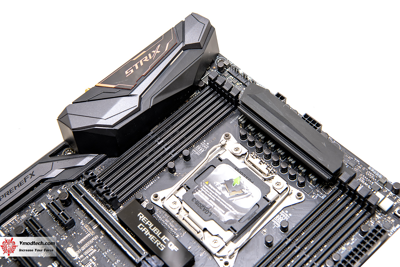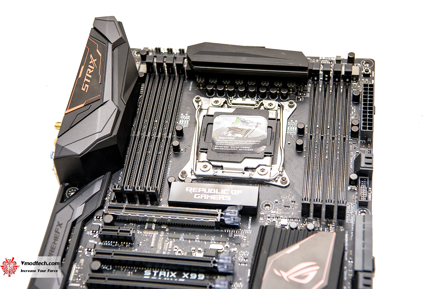 ไปชมบริเวณรอบๆ CPU กันต่อครับ งานนี้จัดเต็มความแรงกันด้วยภาคจ่ายไฟถึง 18 เฟส ส่วนช่องเสียบไฟเลี้ยงซีพียูจะเป็นแบบ 8+4 พิน 2 ช่องนะครับ