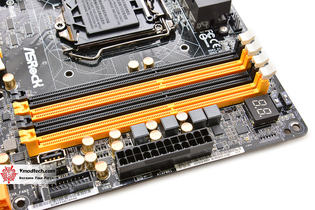 หน้าตาของมาเธอร์บอร์ดรุ่นนี้ จะออกแนวเข้มขรึมดำคาดเหลืองส้มดุดัน ตามคอนเซปต์บอร์ดตระกูล OC จาก ASRock ครับ