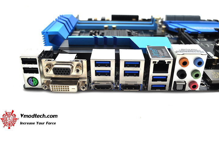 ช่อง เชื่อมต่อ อุปกรณ์ด้านหลังประกอบด้วย 1 x PS/2 Mouse/Keyboard Port , 1 x D-Sub Port , 1 x DVI-D Port , 1 x HDMI Port , 1 x DisplayPort 1.2 , 1 x Optical SPDIF Out Port , 2 x USB 2.0 Ports , 2 x USB 3.0 Ports , 4 x USB 3.0 Ports , 1 x RJ-45 LAN Port , HD Audio Jacks
