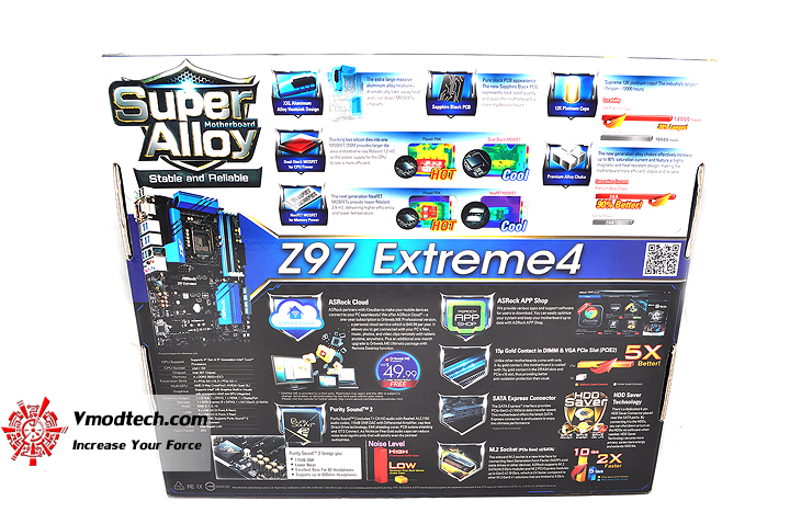 สวัสดีครับทุก ท่านที่เยี่ยมชมเว็บไซต์ Vmodtech.com ในวันนี้เรามาชมรีวิวเมนบอร์ดใหม่ล่าสุดของของทาง INTEL กันครับ ซึ่งยังคงเป็นเมนบอร์ดชิบเซ็ต Z97 ในลำดับที่ 11 ที่ทาง Vmodtech.com ของเราที่ทำการรีวิวมาเรื่อยๆและยังคงมีให้ชมอีกมากมายแน่นอนครับสำหรับมาเธอร์บอร์ด Z97 เอาใจบรรดาสาวกอินเทลกันไปเลย ซึ่งเมนบอร์ดที่ทำการทดสอบกันในวันนี้ยังเป็นแบรนด์ที่มีชื่อเสียงอีกหนึ่งแบรนด์ที่เราคุ้นเคยกันดีอย่าง ASRock มากันในชื่อรุ่น ASRock Z97 Extreme4 ที่อยู่ในซีรี่ย์ Extreme ที่เราคุ้นเคยกันดีด้วยวัสดุเกรดดีอย่างระบบ ASRock Super Alloy ที่นำวัสดุชั้นเยี่ยมมากความสามารถในการใช้งานรวมไปถึงความทนทานตามแบบฉบับของ ASRock Extreme Series กันเลยทีเดียวครับทั้งระบบDual-Stack MOSFET (DSM) ที่จ่ายไฟได้นิ่งเยี่ยมรับรองว่าขาโอเวอร์คล๊อกต้องชอบกันอย่างแน่นอนแม้จะเป็นรุ่นกลางๆแต่แน่นอนครับว่าลากได้สะใจไม่แพ้บรรดาเมนบอร์ดรุ่นใหญ่ๆเลยทีเดียวกับเฟสไฟถึง 12เฟส (Digi Power, 12 Power Phase design) ที่ให้มาแบบเต็มๆ รวมไปถึงเทคโนโลยีใหม่ๆอย่าง M.2 Socket (PCIe Gen2 x2/SATA) ที่รับส่งข้อมูลได้รวดเร็วถึง 10Gb/s กันเลยทีเดียวครับ และสำหรับฟีเจอร์ที่สำคัญอีกอย่างนั่นก็คือระบบเสียง Purity Sound™ 2 includes 7.1 CH HD audio ที่ให้มาเต็มๆสำหรับคอเกมส์เมอร์กับระบบเสียงที่ใสแจ๋วไม่แพ้ซาวด์การ์ดแยกกันเลยทีเดียวครับ นี่คือฟีเจอร์เด่นๆของ ASRock Z97 Extreme4 ยังคงมีฟีเจอร์อีกมากมายครับเดี๋ยวเราไปดูกันในบทความเต็มๆ ก่อนอื่นเราไปชมรายละเอียดจากทางเว็บไซต์กันก่อนครับ