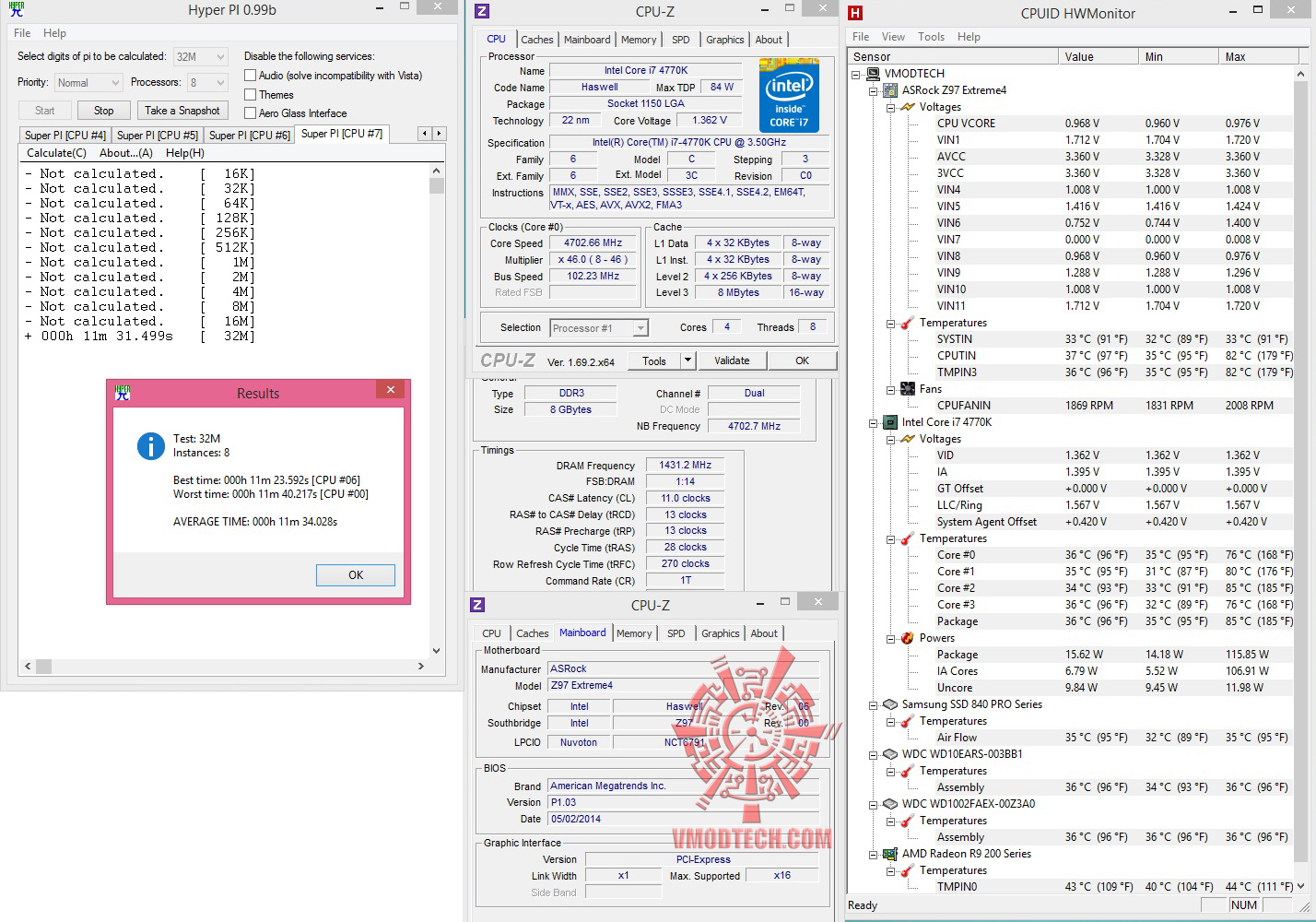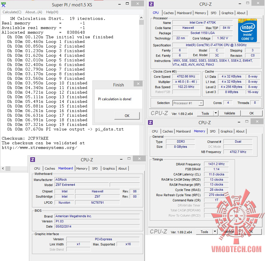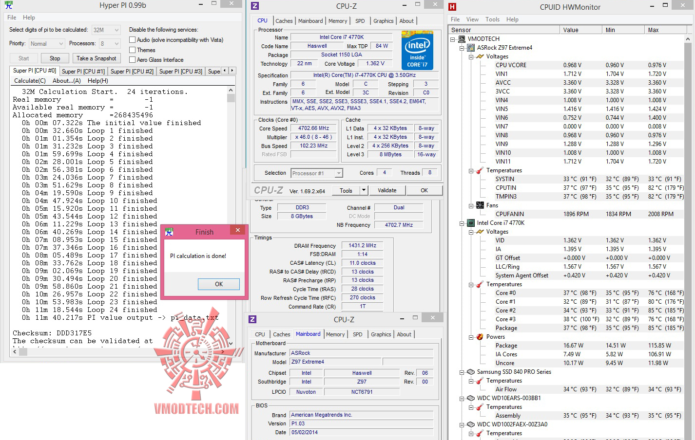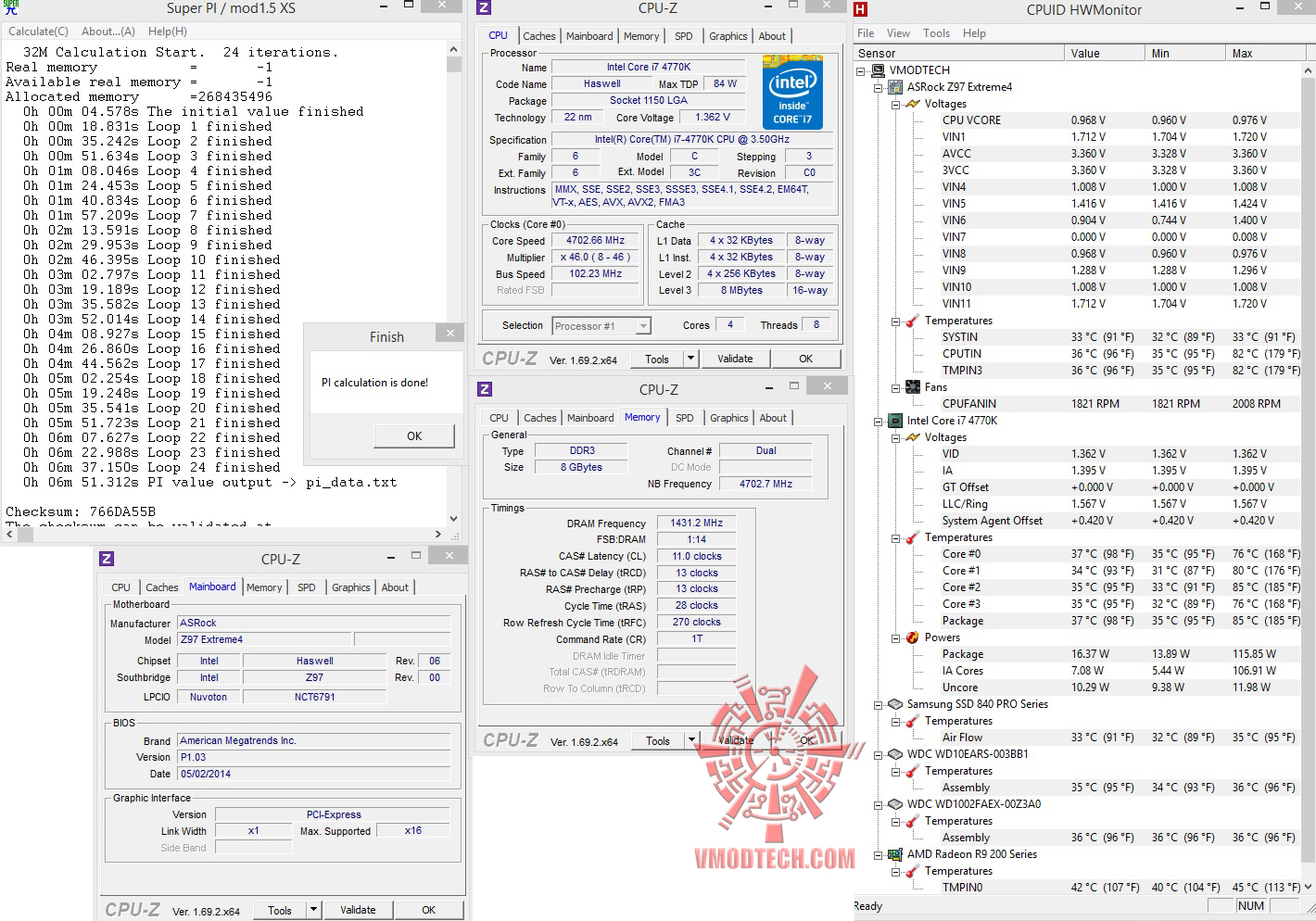 สำหรับชุดทดสอบ SuperPI1MBจบไปที่ 7.67วินาที , 32MB จบไป6นาที 51.312วินาที แรงในระดับมาตราฐาน 4.7Ghzครับ , ส่วน HyperPI32MB ก็ผ่านหมดแรงแบบนิ่งๆใช้งานกันได้จริงอย่างมีเสถียรภาพครับ