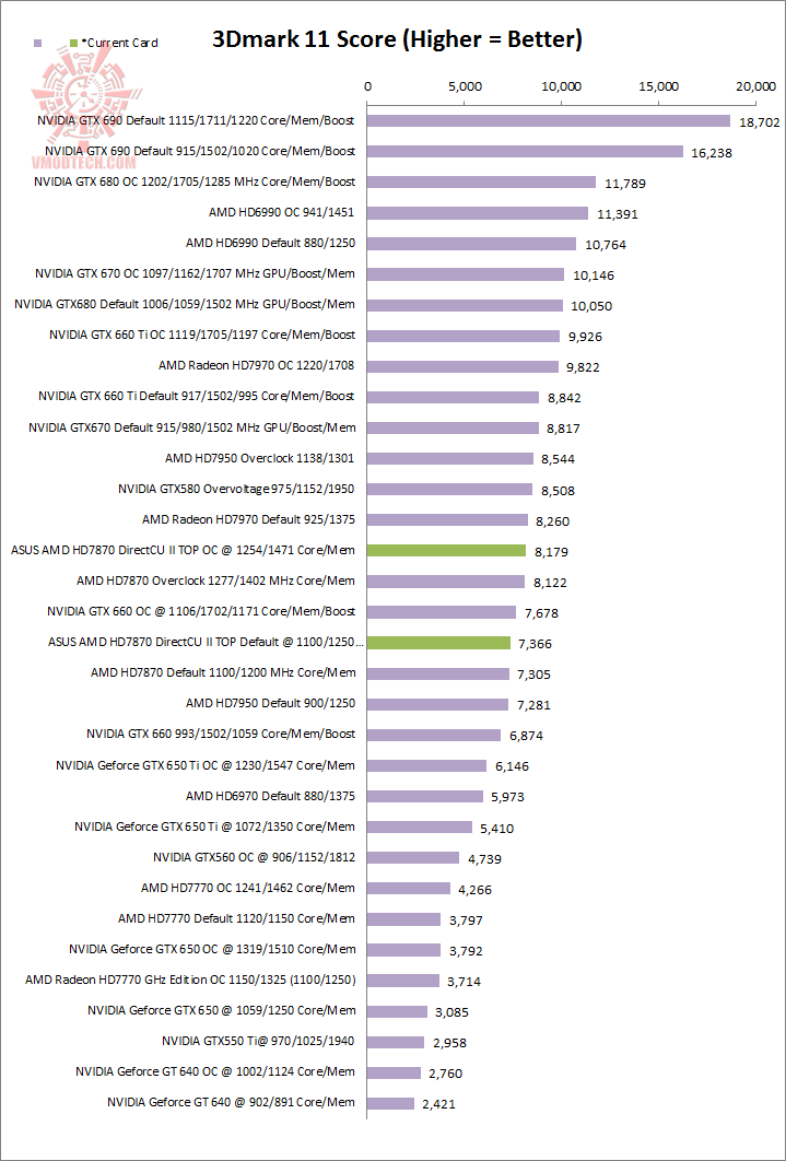 ความแรงบนเทคโนโลยี DirectX 11 นั้นแรงใช้ได้ครับที่ประมาณเจ็ดพันสามร้อยกว่าๆคะแนน แถมโอเวอร์คล๊อกไปแล้วคะแนนพุ่งดีจริงๆที่ 8179 คะแนน