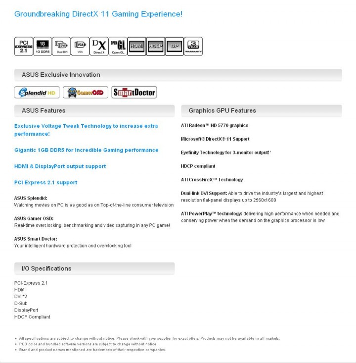 ASUS Radeon HD 5770 1GB Voltage Tweak Edition