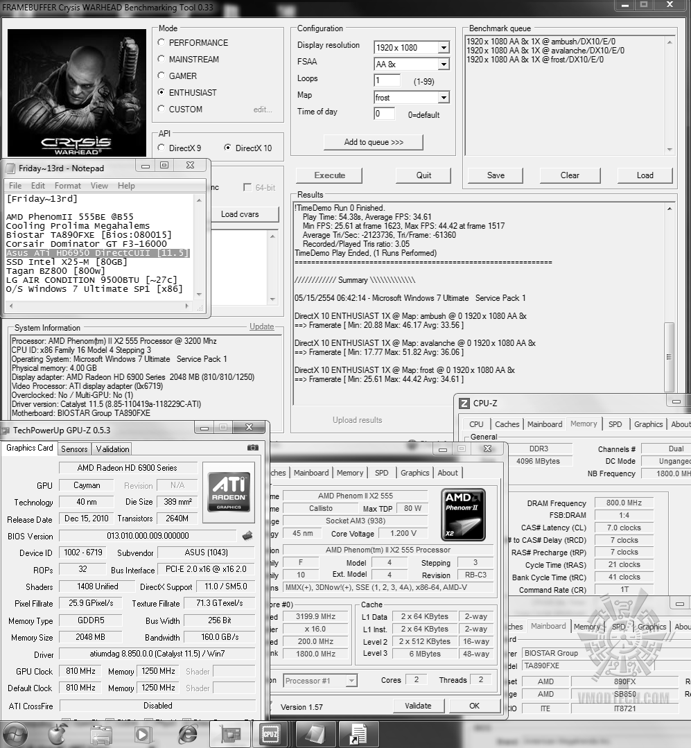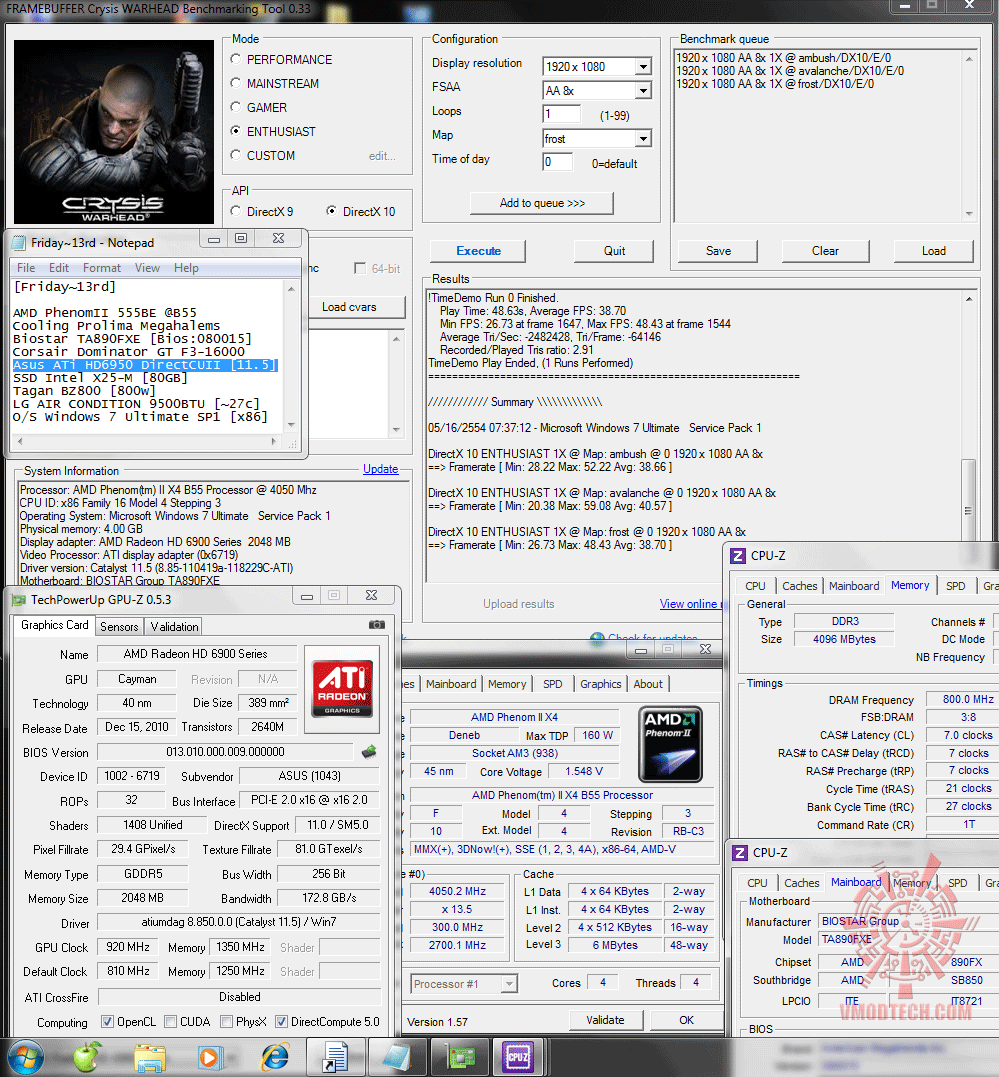 เกมส์กินสเปคตลอดกาลอย่าง Crysis Warhead ปรับกันแบบมืดฟ้ามัวดิน สุดๆ กันทุกอย่าง ตัดขอบเรียบกริบระดับ AA 8x , Resolution จอภาพเอากันแบบ FullHD ก็ยังสามารถเล่นได้อย่างลื่นไหลไปกับ Asus HD 6950 DirectCUII /2GB /GDDR5 ตัวนี้