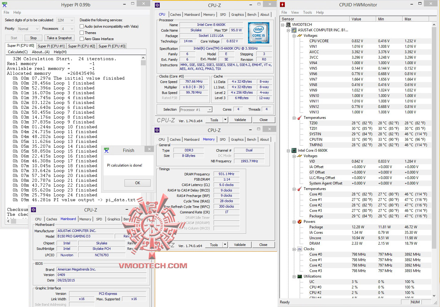 สำหรับชุด ทดสอบ SuperPI1MB จบไปที่ 9.501วินาที , 32MB จบไป 8นาที 15.664วินาที ส่วน HyperPI 32MB ก็ผ่านหมดแรงแบบนิ่งๆใช้งานกันได้จริงอย่างมีเสถียรภาพครับ เฉลี่ยราวๆ 9นาทีกว่าๆ ทั้ง 4เทรด ความแรงอาจจะน้อยกว่าในรุ่นของ DDR4 ครับทั้งในเรื่องของแบรนด์วิธต่างๆ