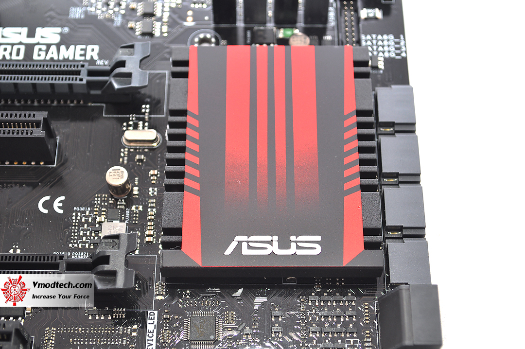 ตัวเมนบอร์ด PCB สีดำสนิท สลับด้วยฮีตซิงค์สีแดงสวยงามมากครับ พร้อมโลโก้ ASUS สวยงาม
