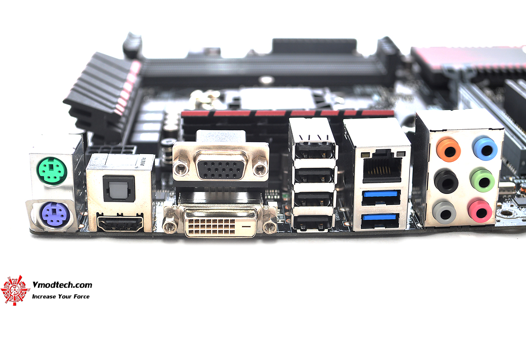 ช่อง เชื่อมต่อ อุปกรณ์ด้านหลังประกอบด้วย 1 x PS/2 keyboard (purple) , 1 x PS/2 mouse (green) , 1 x DVI , 1 x D-Sub , 1 x HDMI , 1 x LAN (RJ45) port(s) , 2 x USB 3.0 , 4 x USB 2.0 , 1 x Optical S/PDIF out , 6 x Audio jack(s)