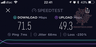 ขาอัพโหลดได้ที่ 138 เมกกะบิทต่อวินาที หรือ 17.25 เมกกะไบท์ต่อวินาที
