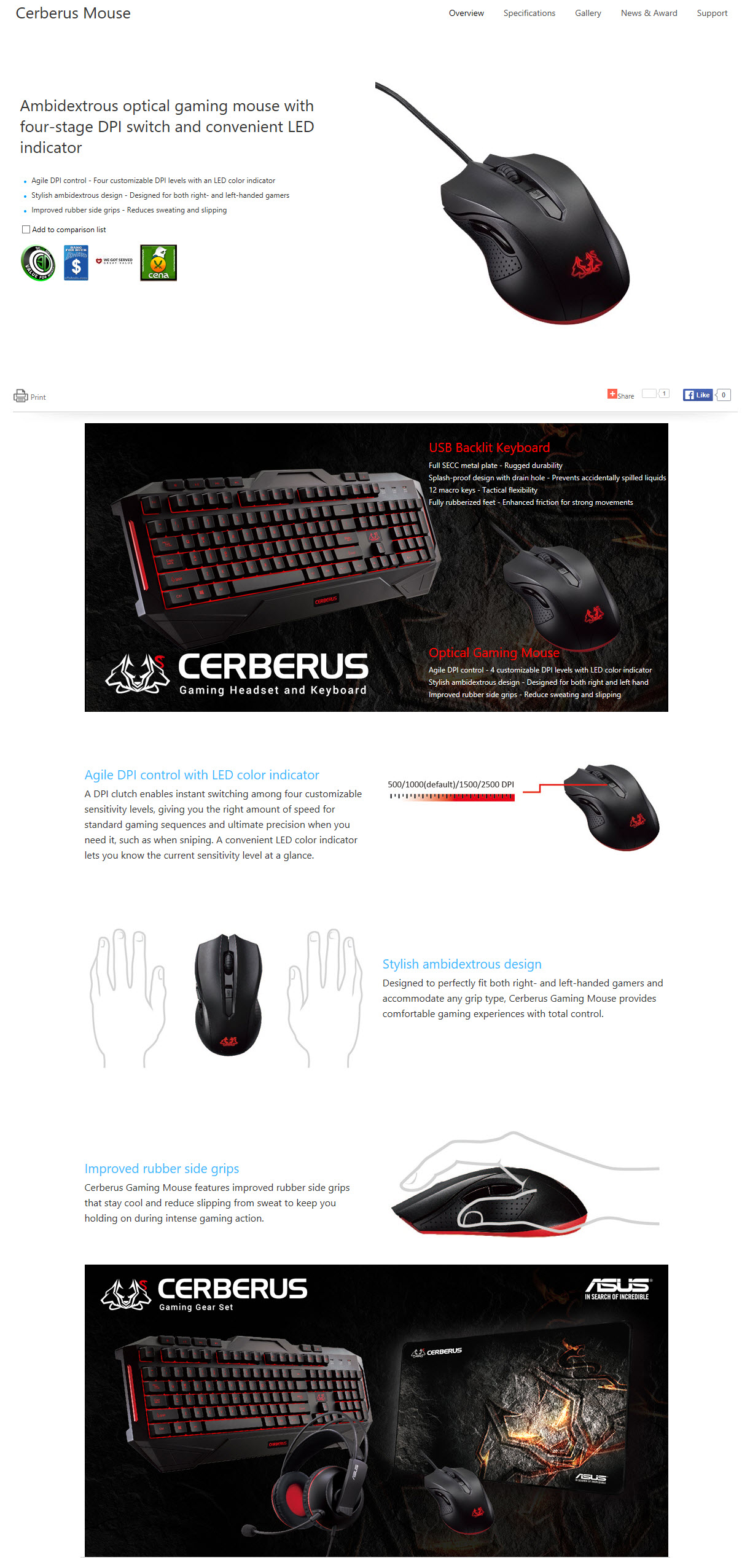สวัสดีครับ เรายังมีเกมส์มิ่งเกียร์จาก ASUS มารีวิวให้ชมกันอีกชิ้นนึงครับ วันก่อนเราได้รีวิวแผ่นรองเมาส์ไปแล้วแต่ว่าในซีรีย์ Cerberus นั้นยังมีอุปกรณ์อีกสองชิ้นก็คือเมาส์และคีย์บอร์ด เราค่อยๆชมกันไปเรื่อยๆเลยละกัน วันนี้เป็น ASUS Cerberus Optical Gaming Mouse ครับ ซึ่ง Ceberus นั้นเป็นซีรีย์เกมส์มิ่งระดับเริ่มต้น ความสามารถและราคานั้นอยู่ในข่ายที่พอจะหาซื้อได้ไม่ยากนัก มาชมรายละเอียดกันเลย