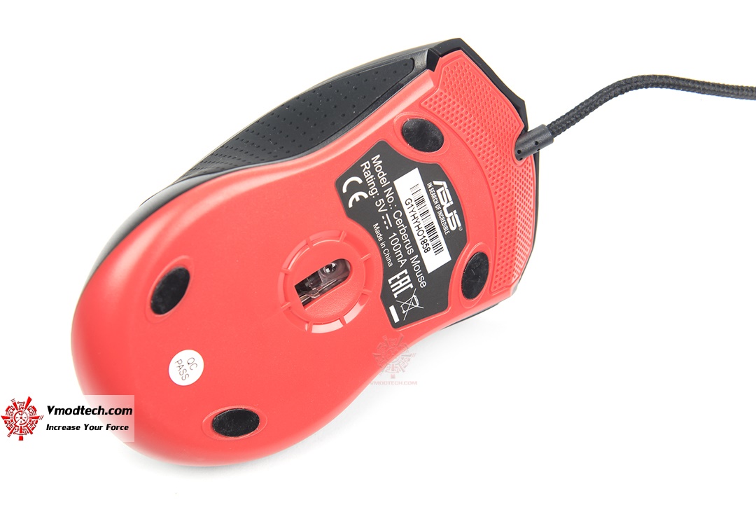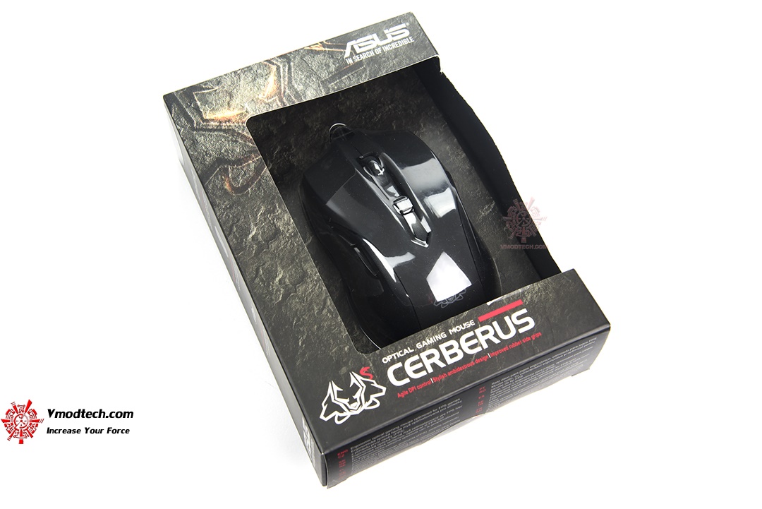 ASUS Cerberus Optical Gaming Mouse นั้นเป็นพลาสติกเกรดดีทีเดียว การเชื่อมต่อเป็นแบบ USB และได้ทำการหุ้มสายไว้อย่างสวยงาม