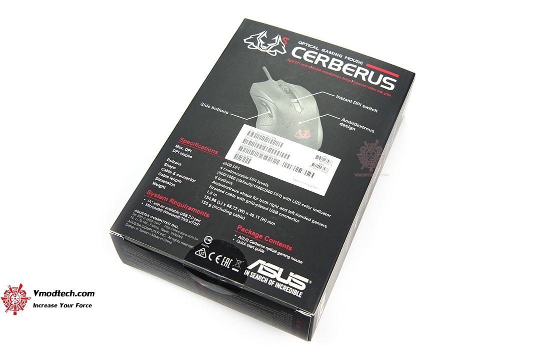 กล่องบรรจุตัว ASUS Cerberus Optical Gaming Mouse นั้นได้รับการออกแบบมาให้สวยงามสีสรรจี๊ดจ๊าดทีเดียว