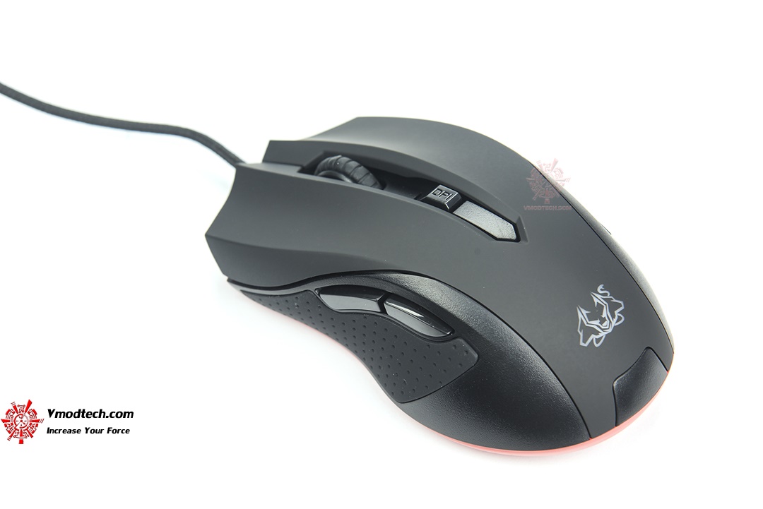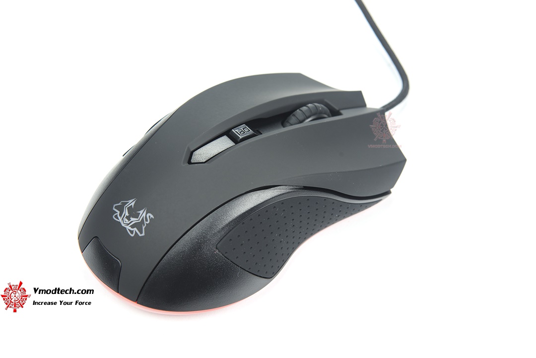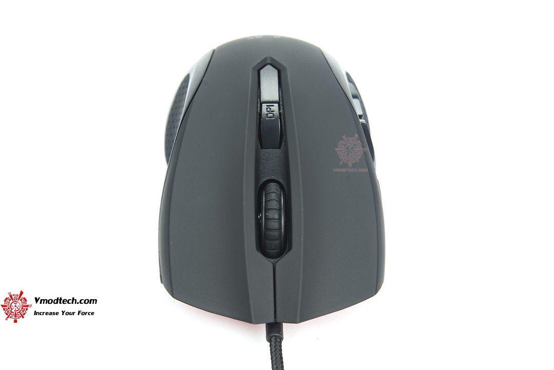 ASUS Cerberus Optical Gaming Mouse นั้นเป็นเมาส์ที่ออกแบบมาให้สามารถใช้งานได้ทั้งมือซ้ายและขวาเลย ตรงกลางจะเป็นสกอล์เมาส์ ถัดไปด้านบนจะเป็นปุ่มปรับ DPI ซึ่งเราสามารถเลือกได้สี่ระดับ และสูงสุดที่ 2500 DPI