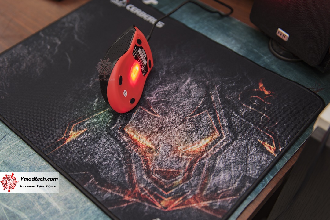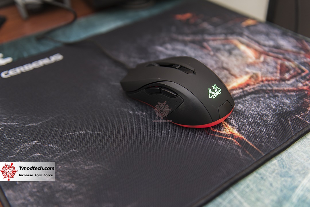 ASUS Cerberus Optical Gaming Mouse นั้นเป็นเมาส์ที่มีน้ำหนักเบาครับ ปุ่มกดนั้นมีความแข็งพอประมาณ เวลาใช้งานรู้สึกได้ครับว่าสามารถเคลื่อนที่เมาส์ได้อย่างสะดวกสบายด้วยน้ำหนักที่เบาแบบนี้ ตัวเซนเซอร์ที่แม้จะมีความละเอียดที่ 2500 DPI นั้นก็สามารถตอบสนองได้อย่างสมบูรณ์ ไม่ขาดตกบกพร่องแต่ประการใด การเคลื่อนที่ของเคอร์เซอร์นั้นกระชับไม่ต่างจากเมาส์รุ่นใหญ่ๆครับ นิดเดียวตรงที่สายนั้นค่อนข้างมีความแข็งเมื่อเทียบกับน้ำหนักตัวที่เบาทำให้เวลาเราเคลื่อนที่ตัวเมาส์ไปด้านบนนั้นอาจจะติดสายหรือรู้สึกเกะกะไปบ้าง ไฟแสดงผลนั้นก็ปรับเปลี่ยนเฉดไปตาม DPI ที่เราเลือกครับ อาจจะไม่ใช่เมาส์แสงสีตระการตาแต่ก็มีประสิทธิภาพดีพอตัว ลองพิจารณาดูครับ