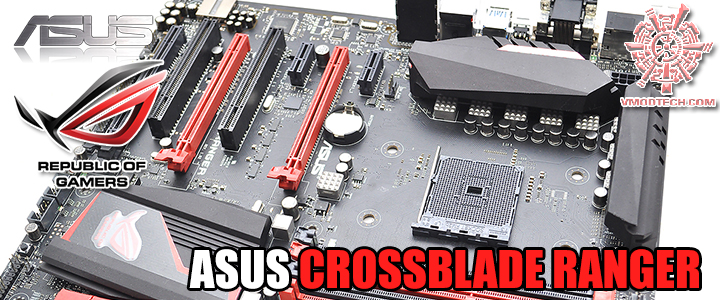 สวัสดีทุกท่านที่เยี่ยมชมเว็บไซต์ Vmodtech.com ในวันนี้เรามาชมรีวิวเมนบอร์ดของทาง AMD ในซ๊อกเก็ต FM2+ กันบ้างครับ ซึ่งวันนี้เรียกได้ว่าเป็นเมนบอร์ดตัวแรงของทางฝั่ง AMD FM2+ กันเลยครับ ถือได้ว่าจัดเต็มทั้งความแรงและอัดแน่นด้วยฟีเจอร์กันเลยทีเดียว มากันในแบรนด์ดังคุณภาพเยี่ยมอย่าง ASUS ในชื่อรุ่น ASUS CROSSBLADE RANGER ที่อยู่ในตระกูล ROG นั่นเองครับ แน่นอนครับว่าถ้าเป็น ROG นั้นบรรดาฟีเจอร์ต่างๆนั้นให้มาเพียบแน่นอนเพราะเป็นเมนบอร์ดในซีรี่ย์ท๊อปสุดของทาง ASUS นั่นเอง โดยฟีเจอร์เด่นๆของ ASUS CROSSBLADE RANGER ก็จัดมาให้อาทิ Intel™ Ethernet + LANGuard + GameFirst III , SupremeFX 2014 + Sonic Radar II , KeyBot , Gamer’s Guardian เรียกได้ว่าจัดเต็มสำหรับนักโอเวอร์คล๊อกและเกมส์เมอร์ขาแรงกันแบบเต็มๆเลยครับ เดี๋ยวเราไปชมกันครับว่าจะมีประสิทธิภาพความแรงแค่ไหนจะถูกใจคอเกมส์เมอร์ และขาโอเวอร์คล๊อกกันหรือไม่ ก่อนอื่นไปชมรายละเอียดจากทางผู้ผลิตกันก่อนครับ