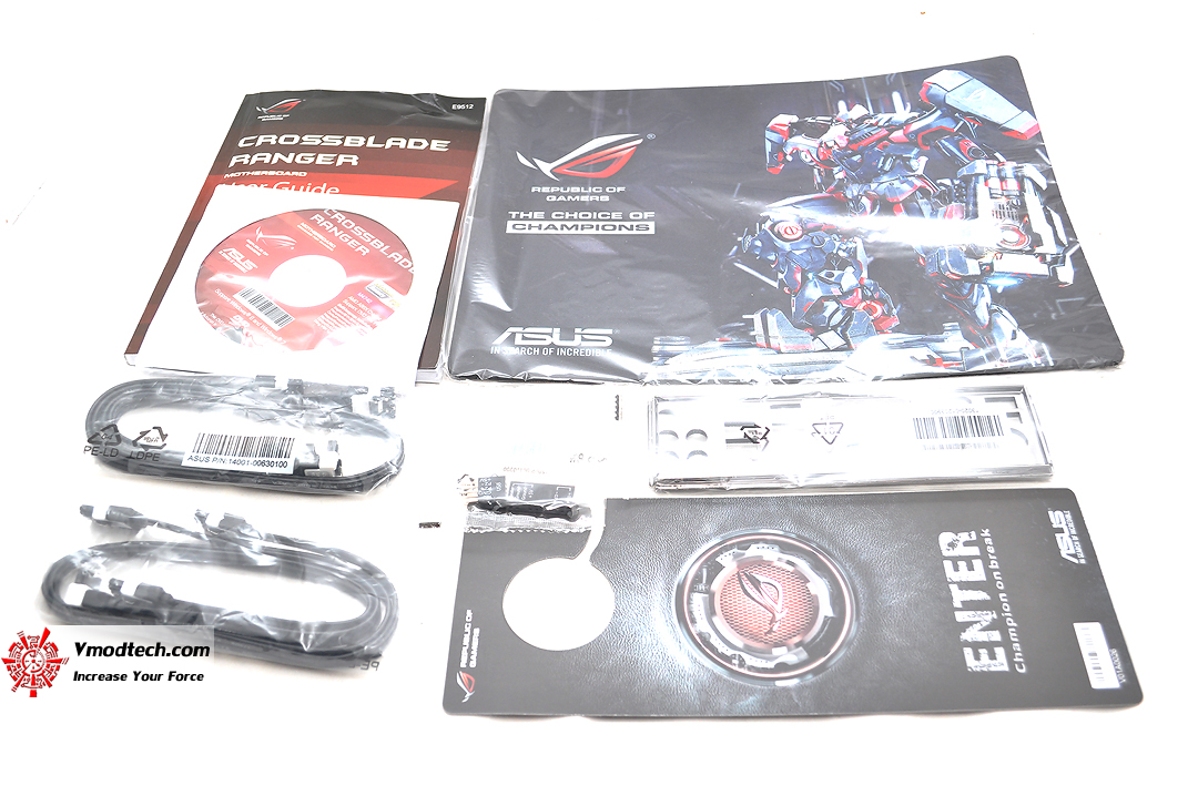 ภายในกล่องให้ อุปกรณ์มาเยอะครับ แผ่นไดร์เวอร์ คู่มือ สายSATA 2เส้น ฝาหลัง แผ่นรองเม้าส์ และป้ายห้ามรบกวนที่สาวก ROG คุ้นเคยกันดี