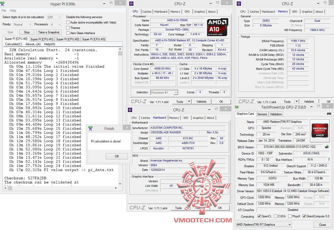 สำหรับ ชุดทดสอบ SuperPI1MBจบไปที่ 15.891นาที , 32MB จบไป14นาที 19.518วินาที แรงในระดับมาตราฐาน 4.6Ghzครับ , ส่วน HyperPI32MB ก็ผ่านหมดแรงแบบนิ่งๆใช้งานกันได้จริงอย่างมีเสถียรภาพครับ