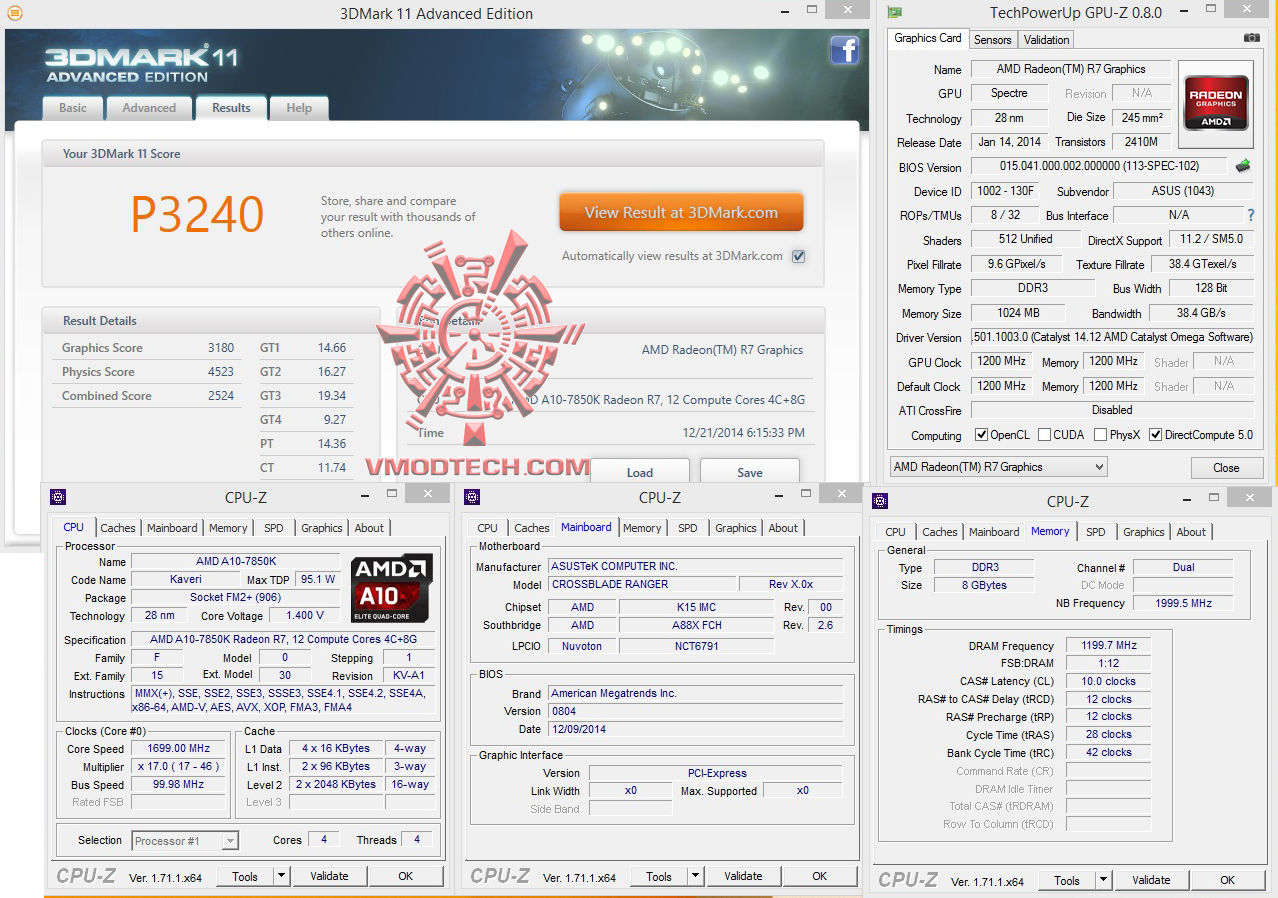 3Dmark11 อยู่ที่ 3240คะแนน แรงแบบทะลุสามพันสี่กันไปเลยครับ ทำเอาบรรดาการ์ดจอแยกในรุ่นกลางๆมีสะอึกกันเลยทีเดียว